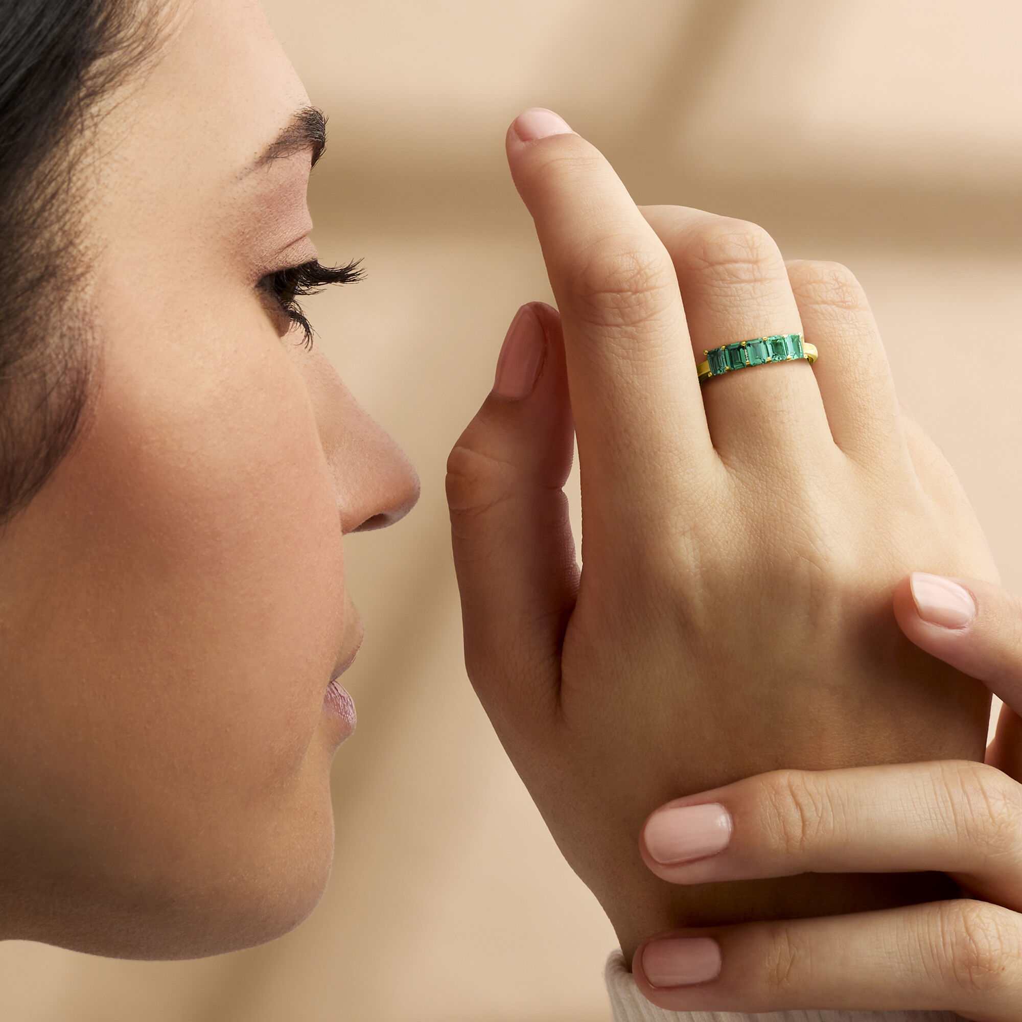 Lab-Grown Emerald ( Color: Green, Quantity: 5, Shape & Cutting Style: Emerald, Weight: 0.80 ct. t.w., Size: 4×3 mm) |