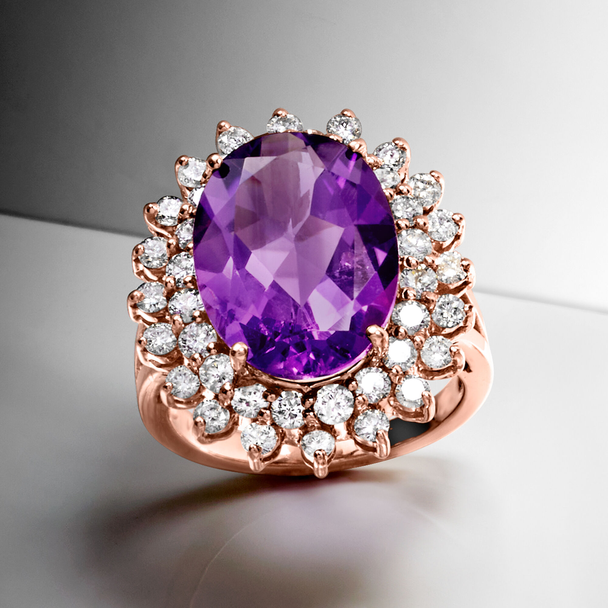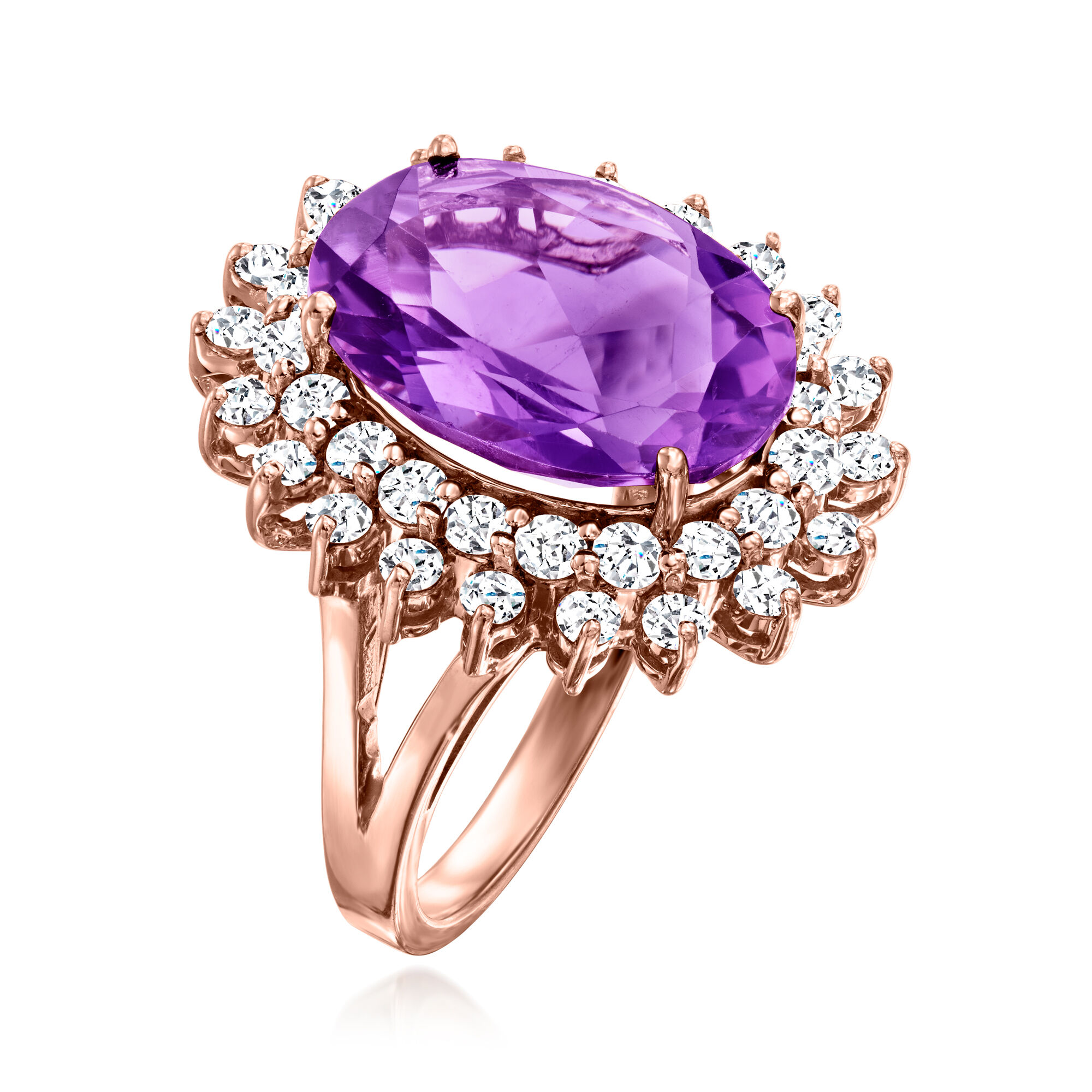 9.00 Carat Amethyst and 1.60 ct. t.w. Diamond Ring in 14kt Rose Gold
