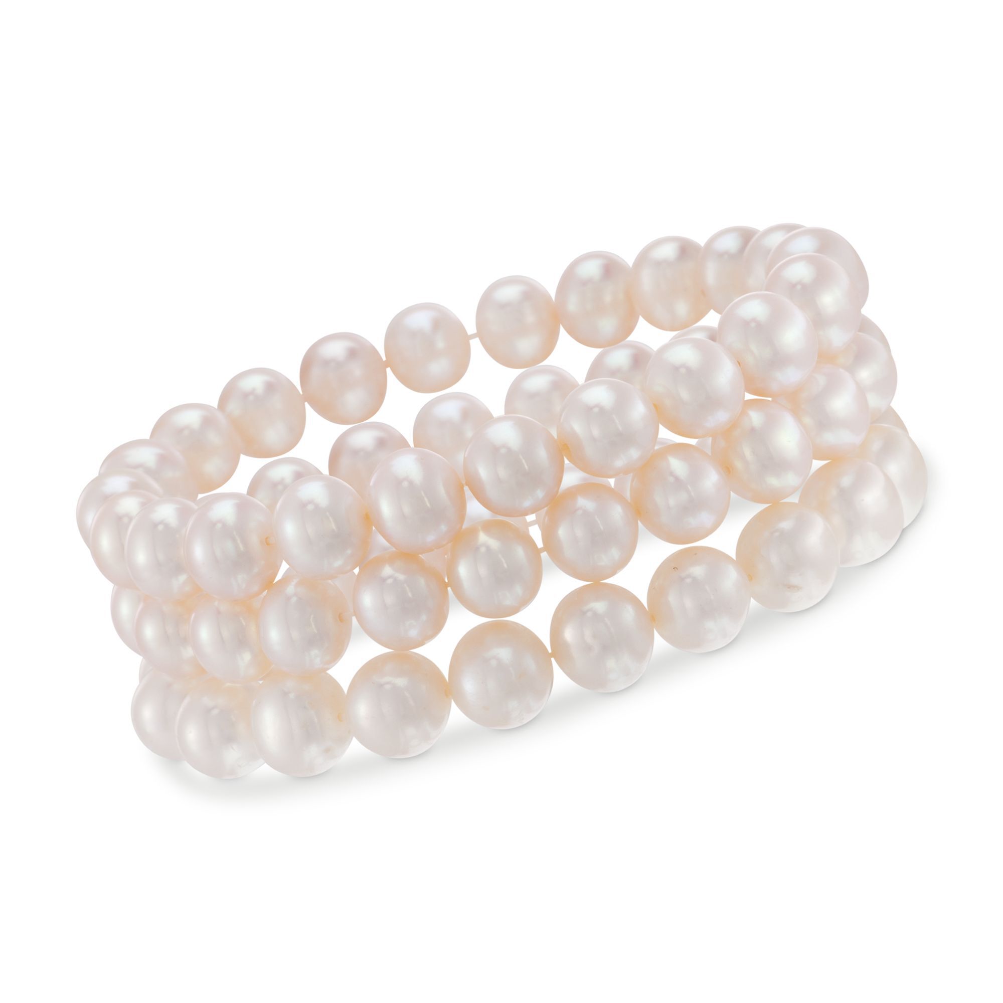 9.5-10.5mm Cultured Pearl Jewelry Set: Three Stretch Bracelets