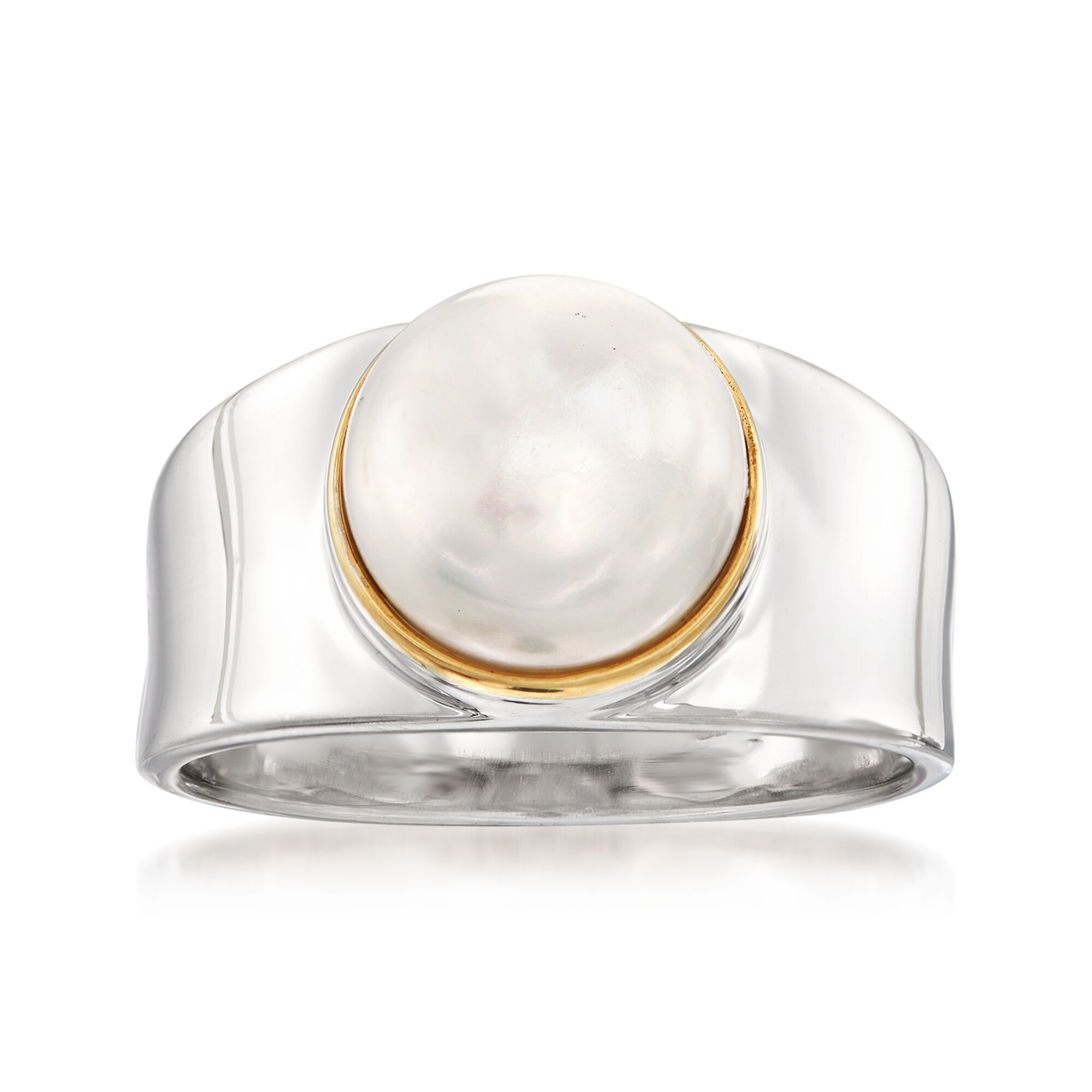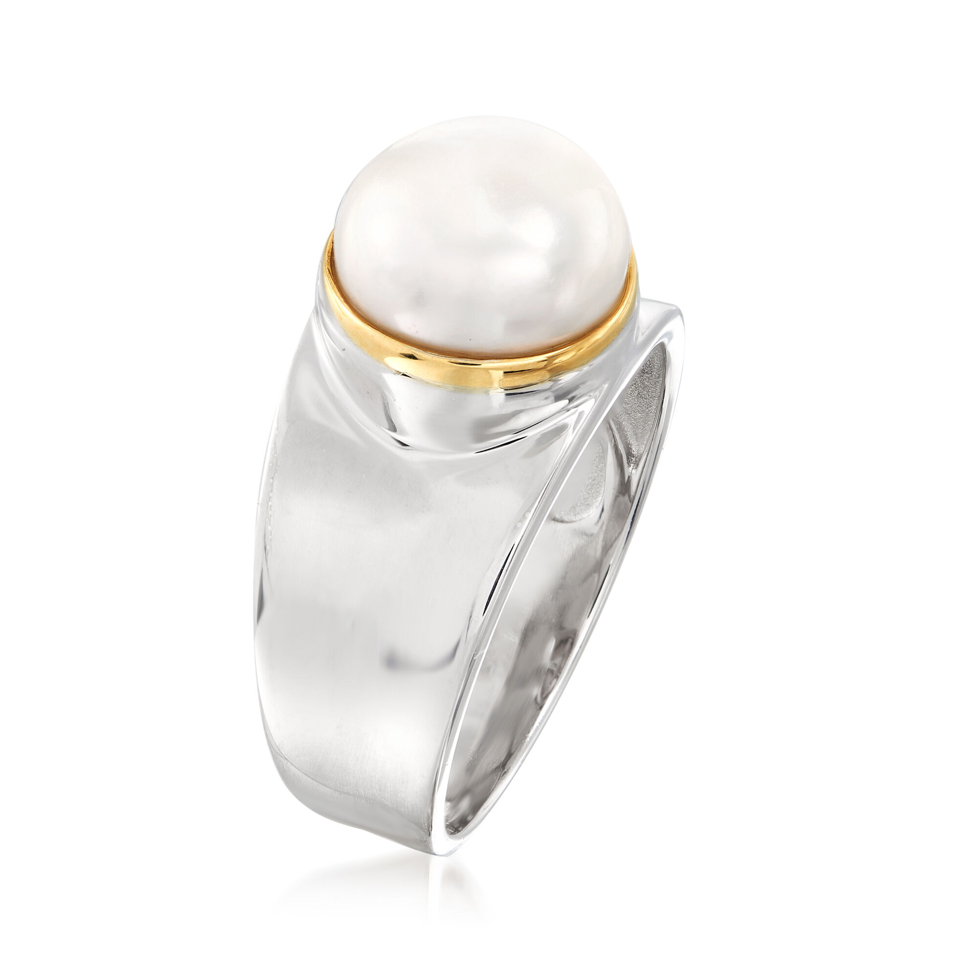 9.5-10mm Cultured Pearl Ring in Sterling Silver with 14kt Gold