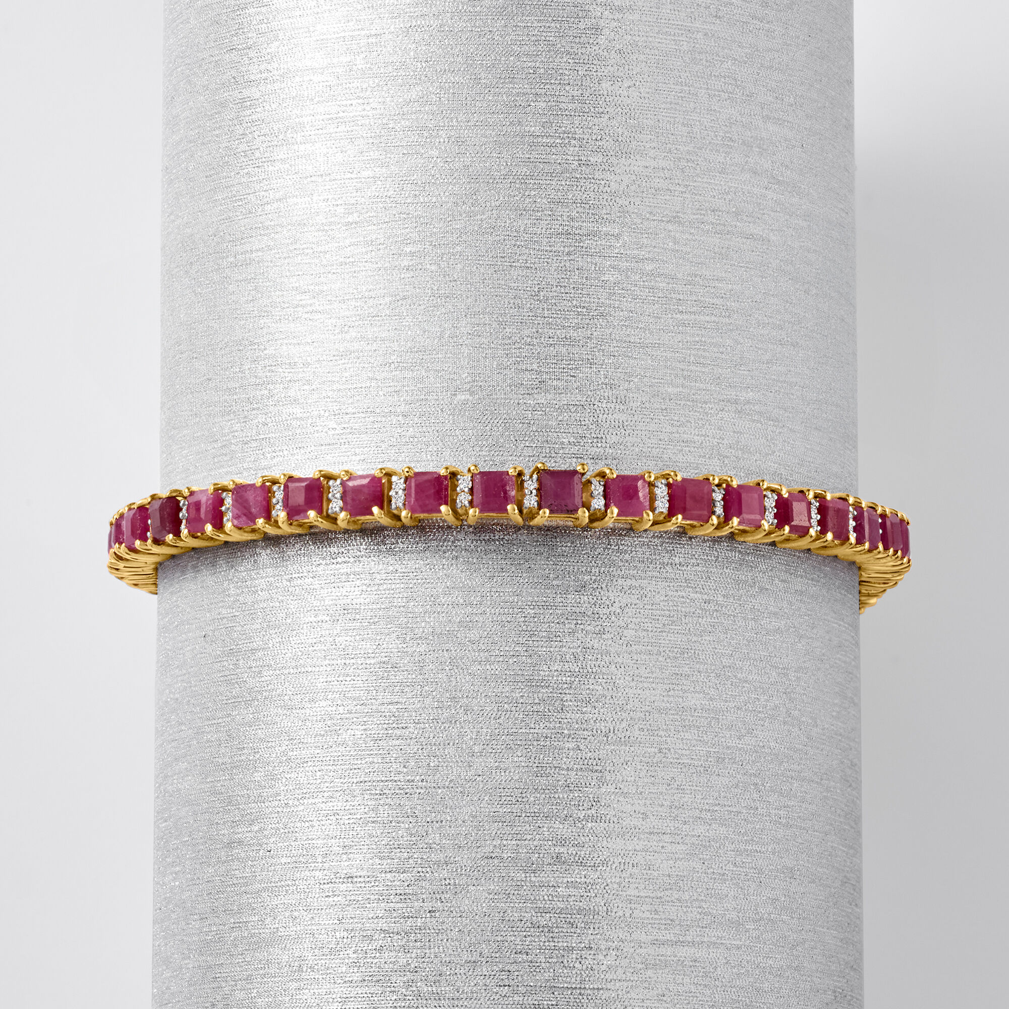 9.50 ct. t.w. Ruby Tennis Bracelet with .50 ct. t.w. Diamonds in 18kt Gold Over Sterling