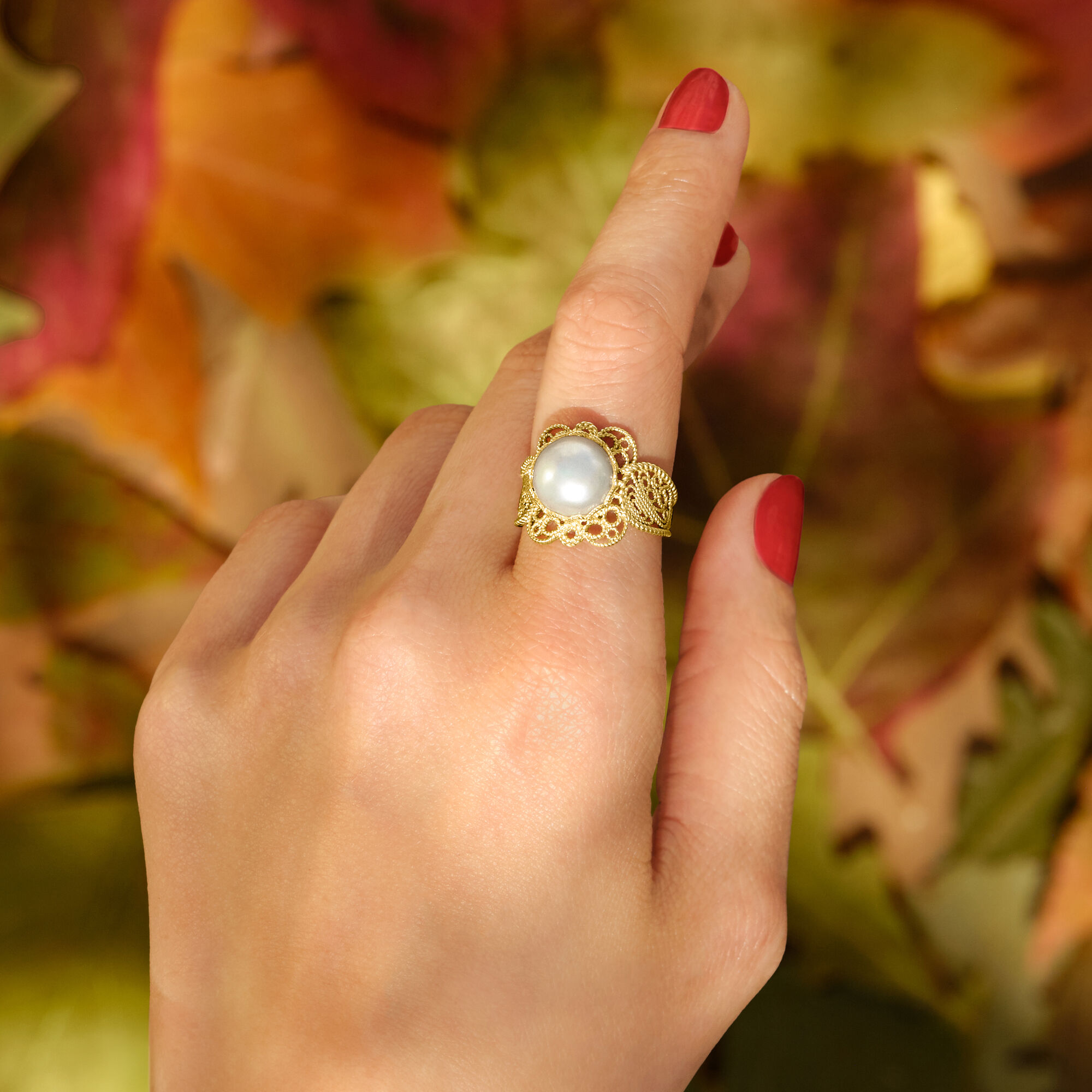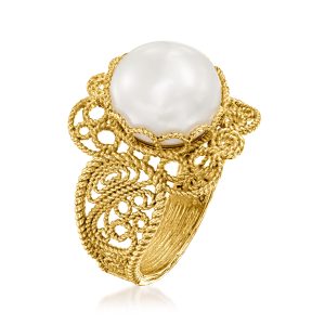 9-9.5mm Cultured Pearl Filigree Ring in 18kt Gold Over Sterling