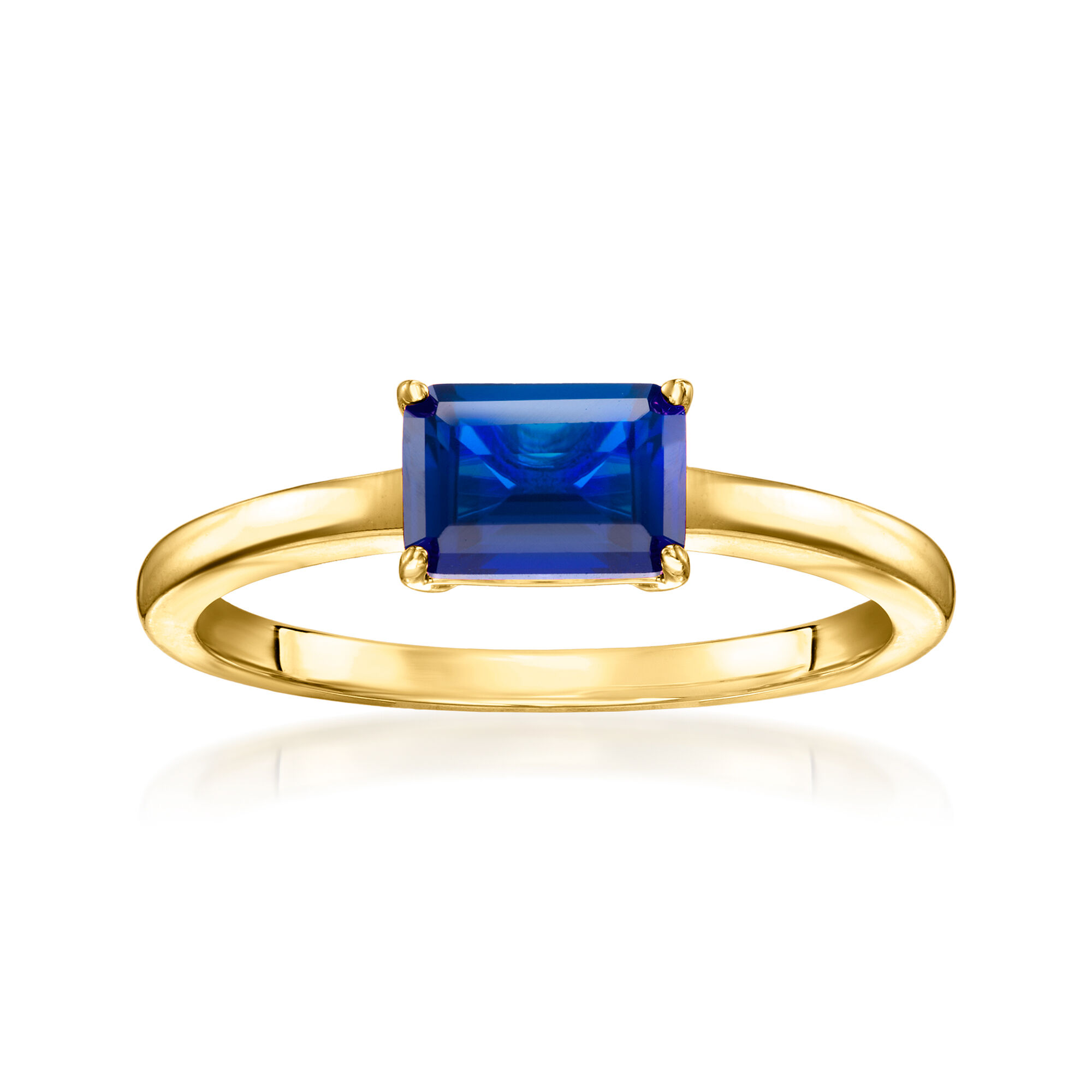 .90 Carat Emerald-Cut Lab-Grown Sapphire Ring in 18kt Gold Vermeil