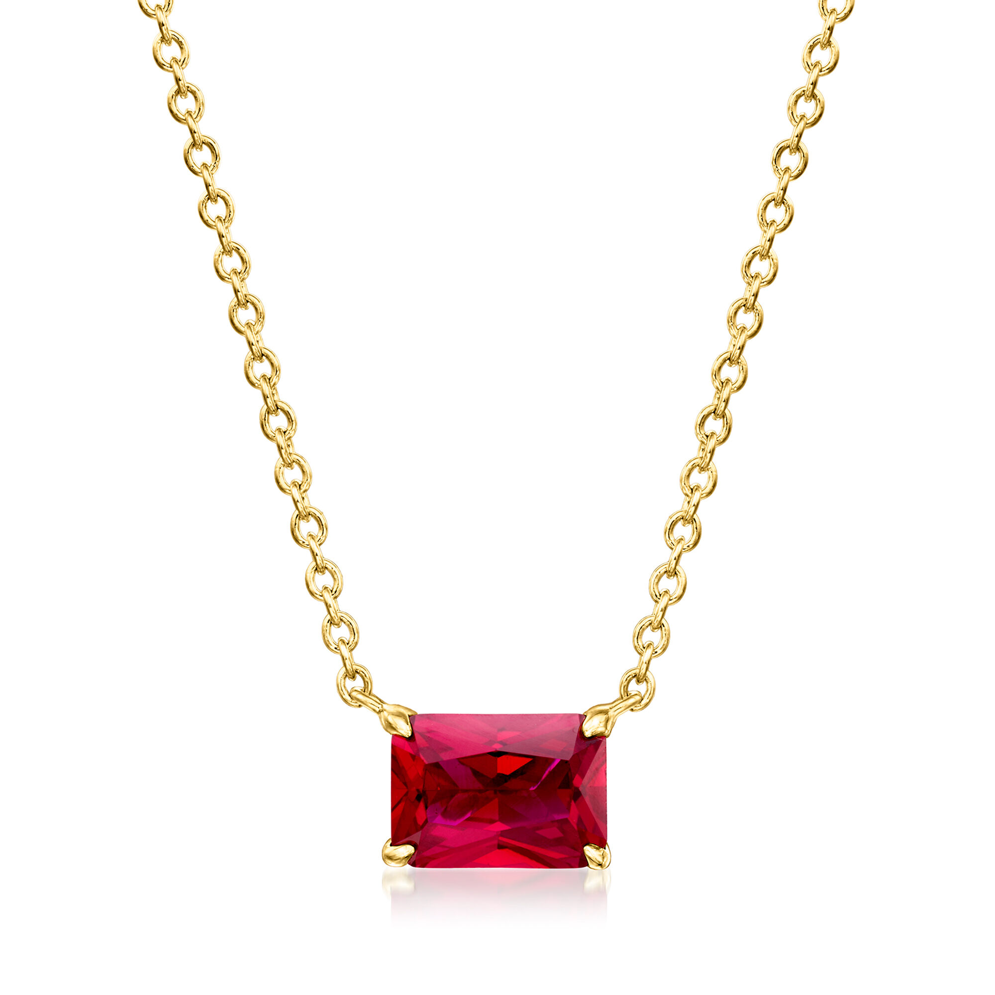 .90 Carat Lab-Grown Ruby Necklace in 18kt Gold Vermeil. 16″