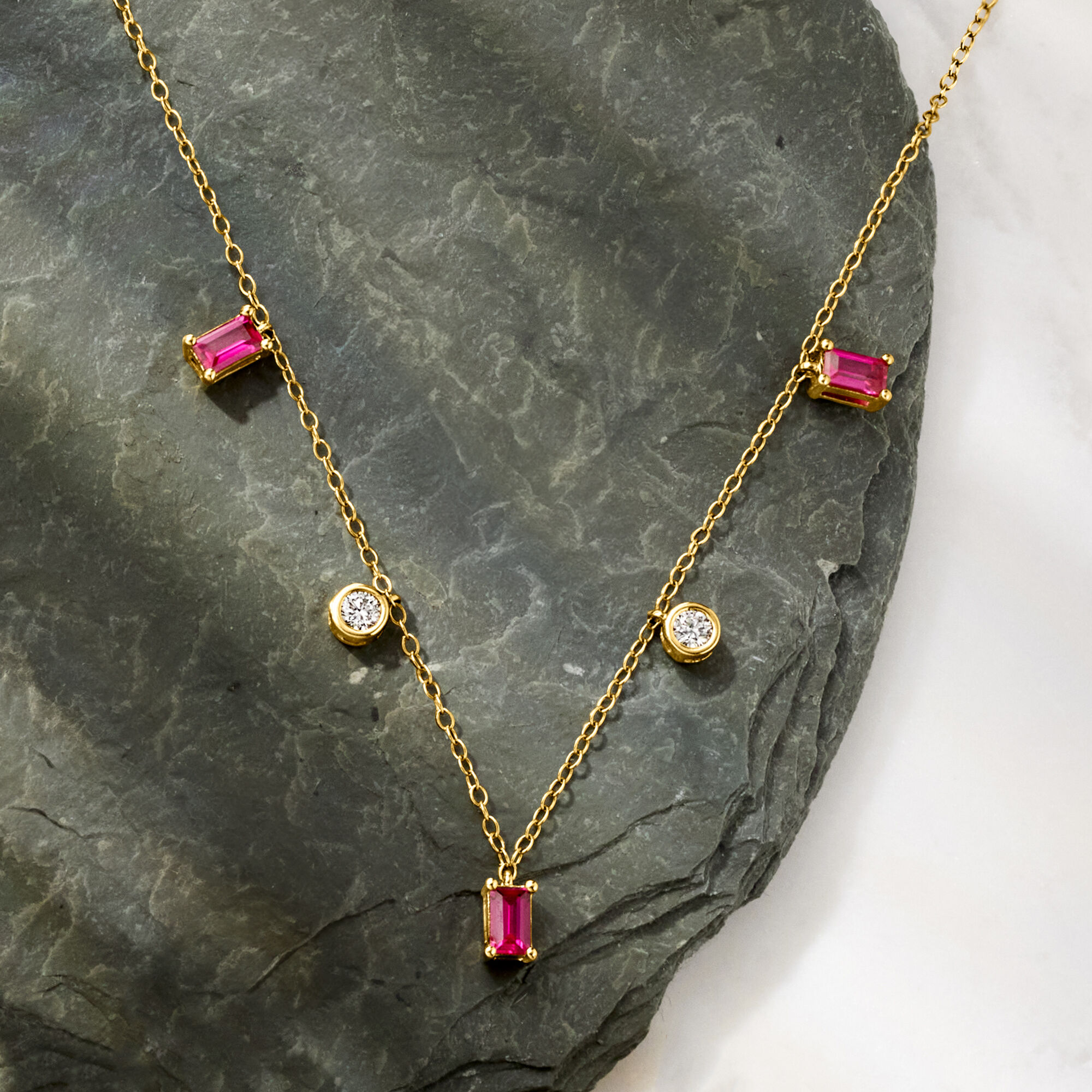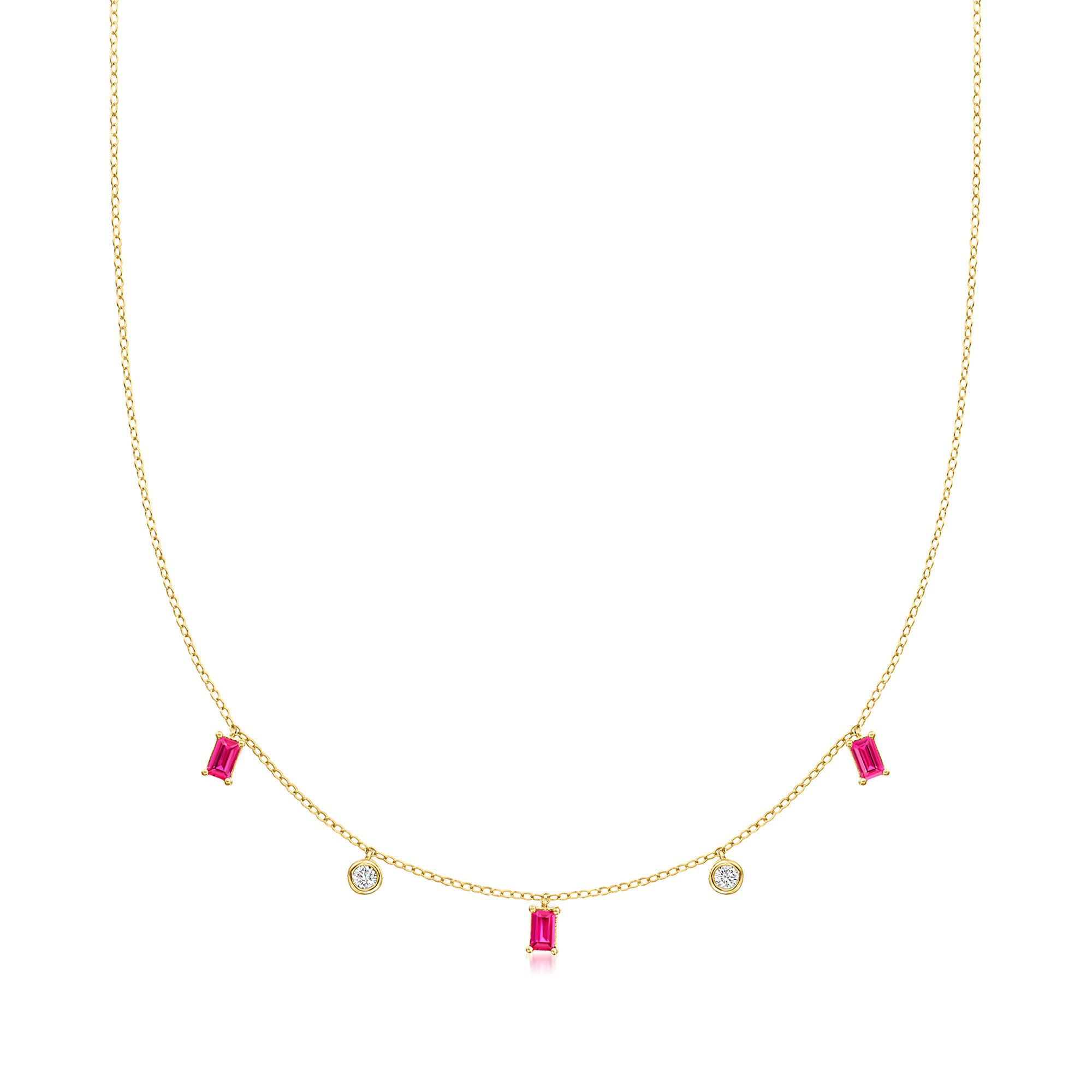 .90 ct. t.w. Lab-Grown Ruby and .20 ct. t.w. Lab-Grown Diamond Station Necklace in 18kt Gold Vermeil. 16″