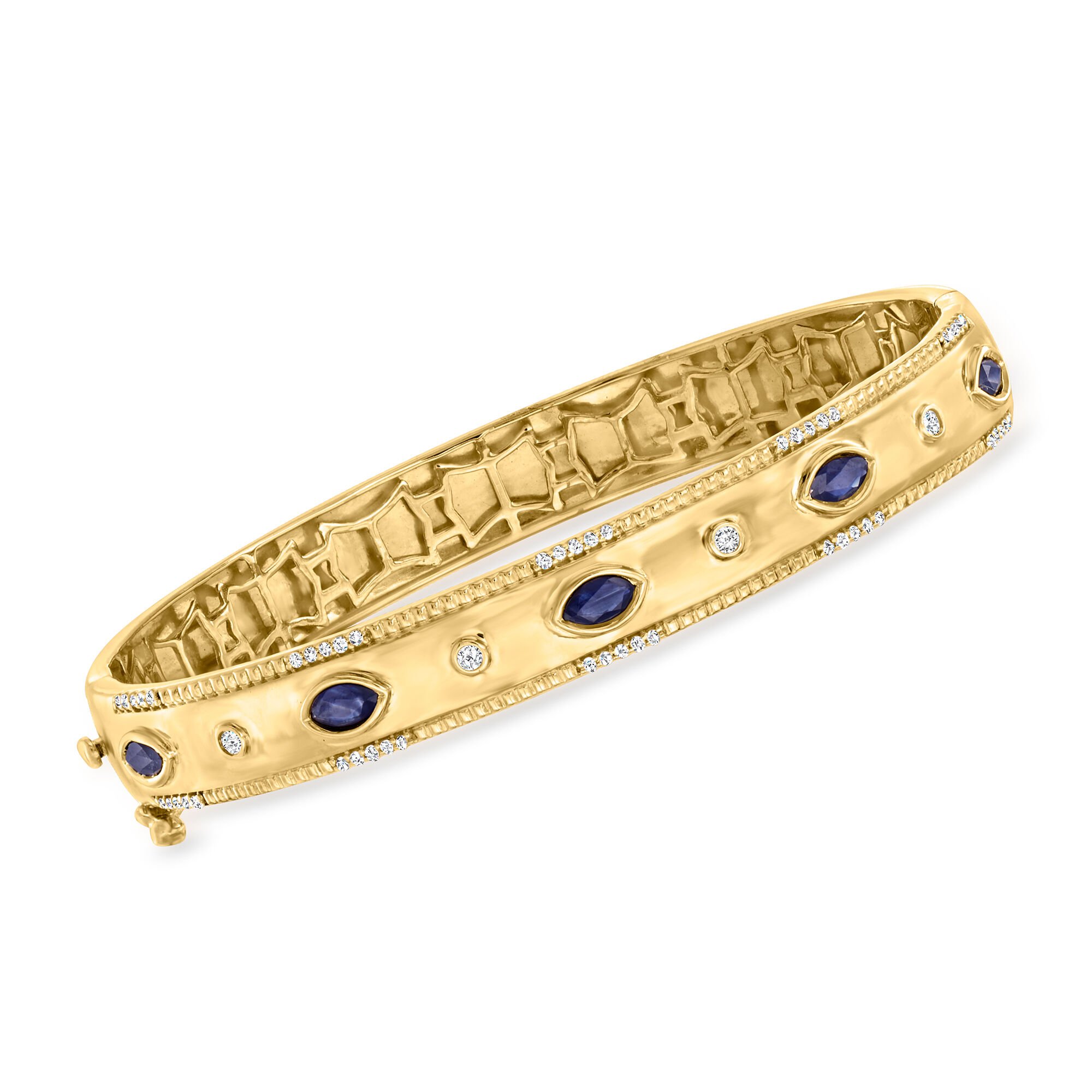 .90 ct. t.w. Sapphire and .26 ct. t.w. Diamond Bangle Bracelet in 18kt Gold Over Sterling