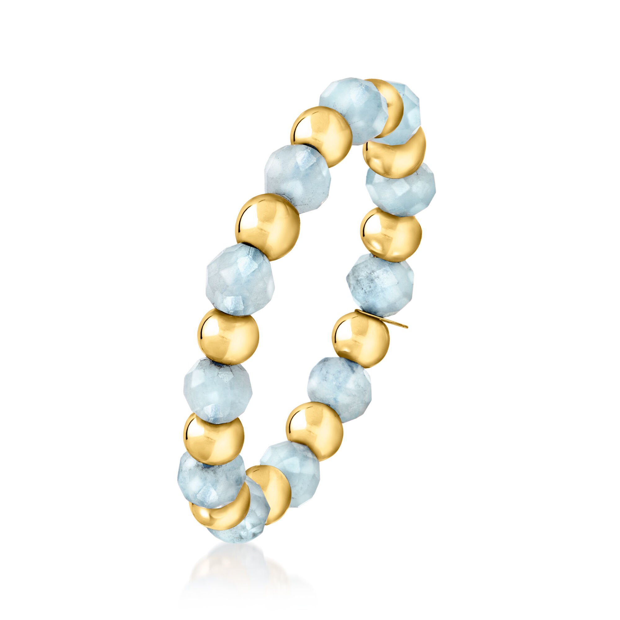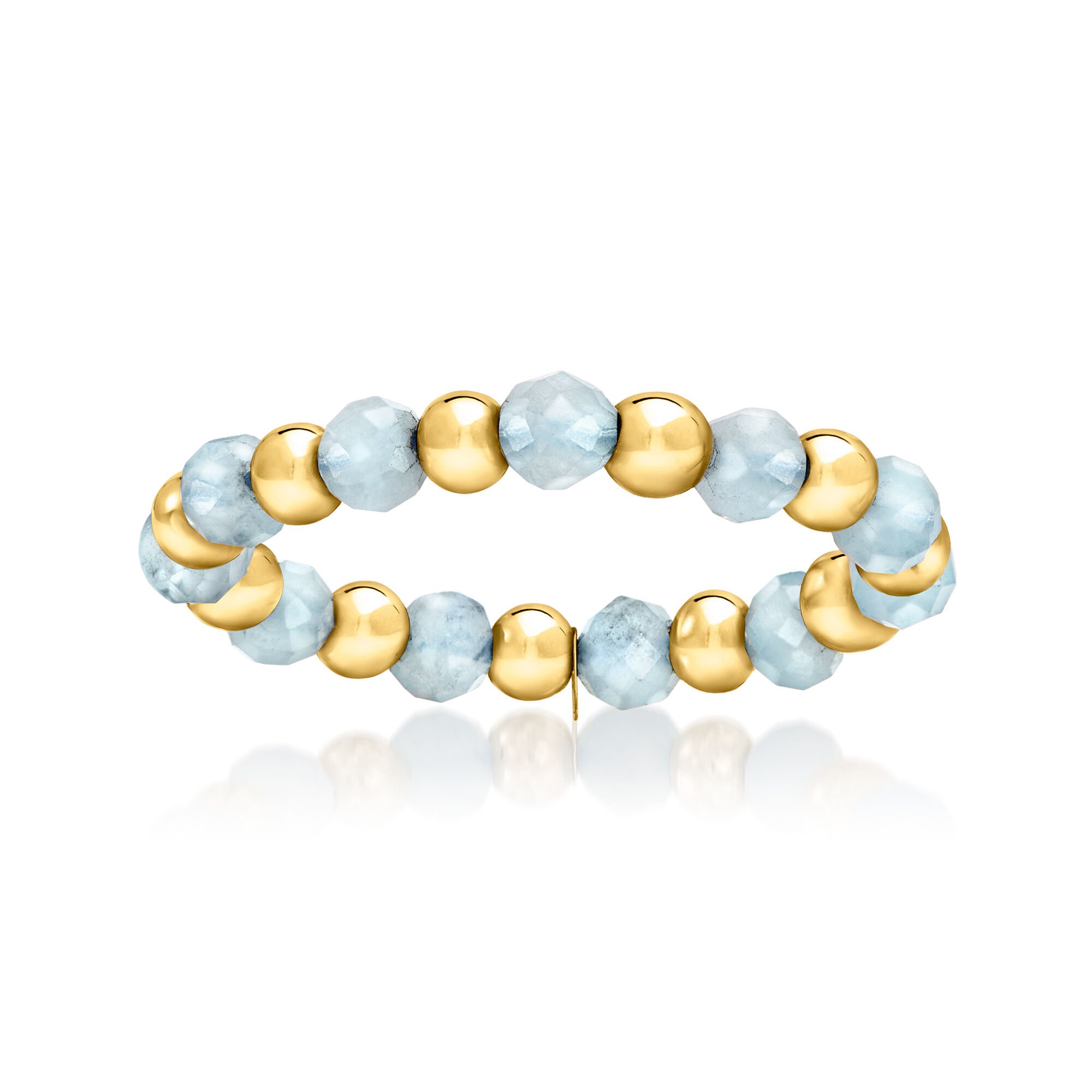 Aquamarine Bead Stretch Ring with 14kt Yellow Gold