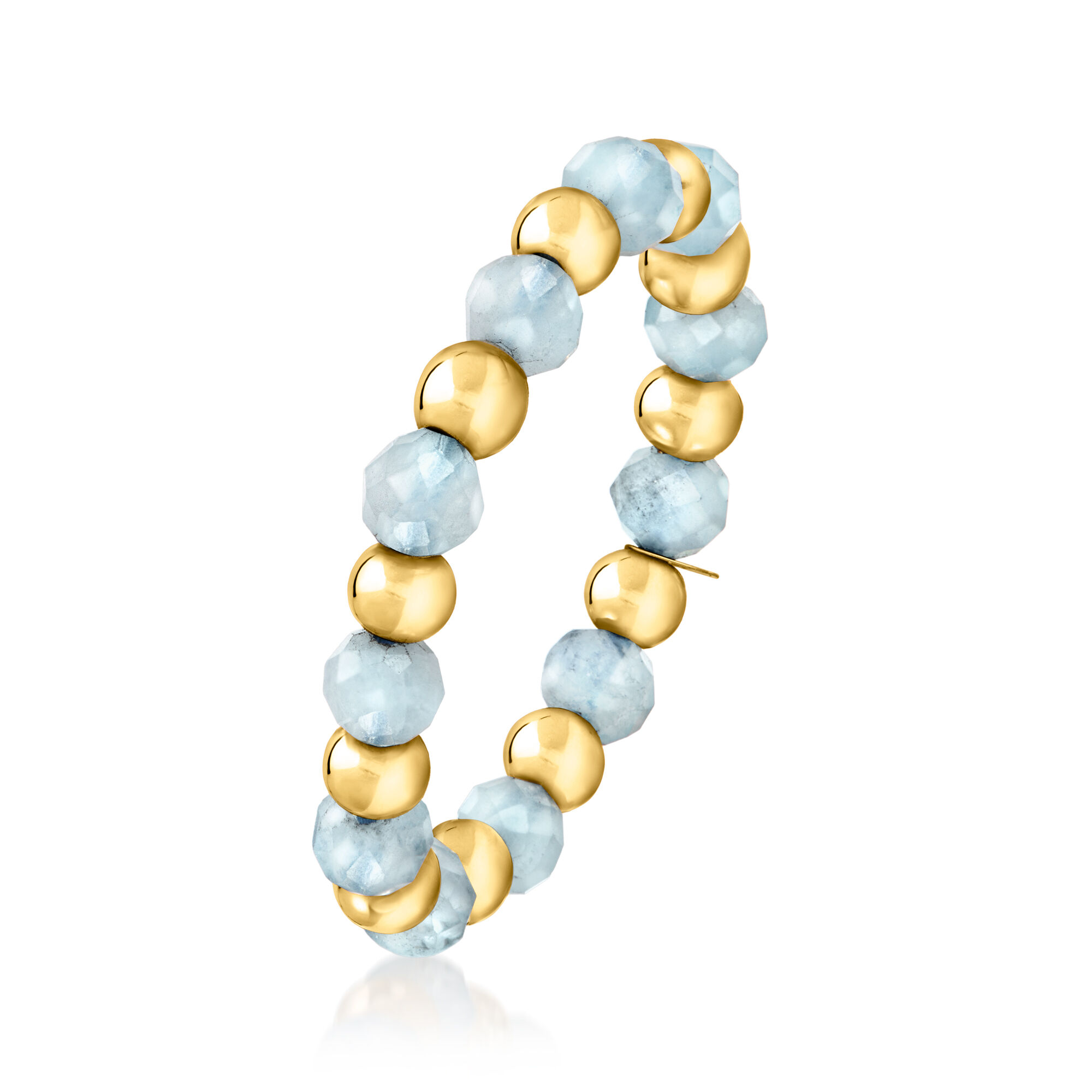 Aquamarine Bead Stretch Ring with 14kt Yellow Gold
