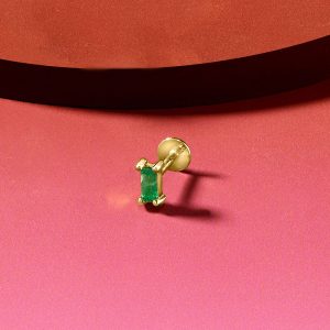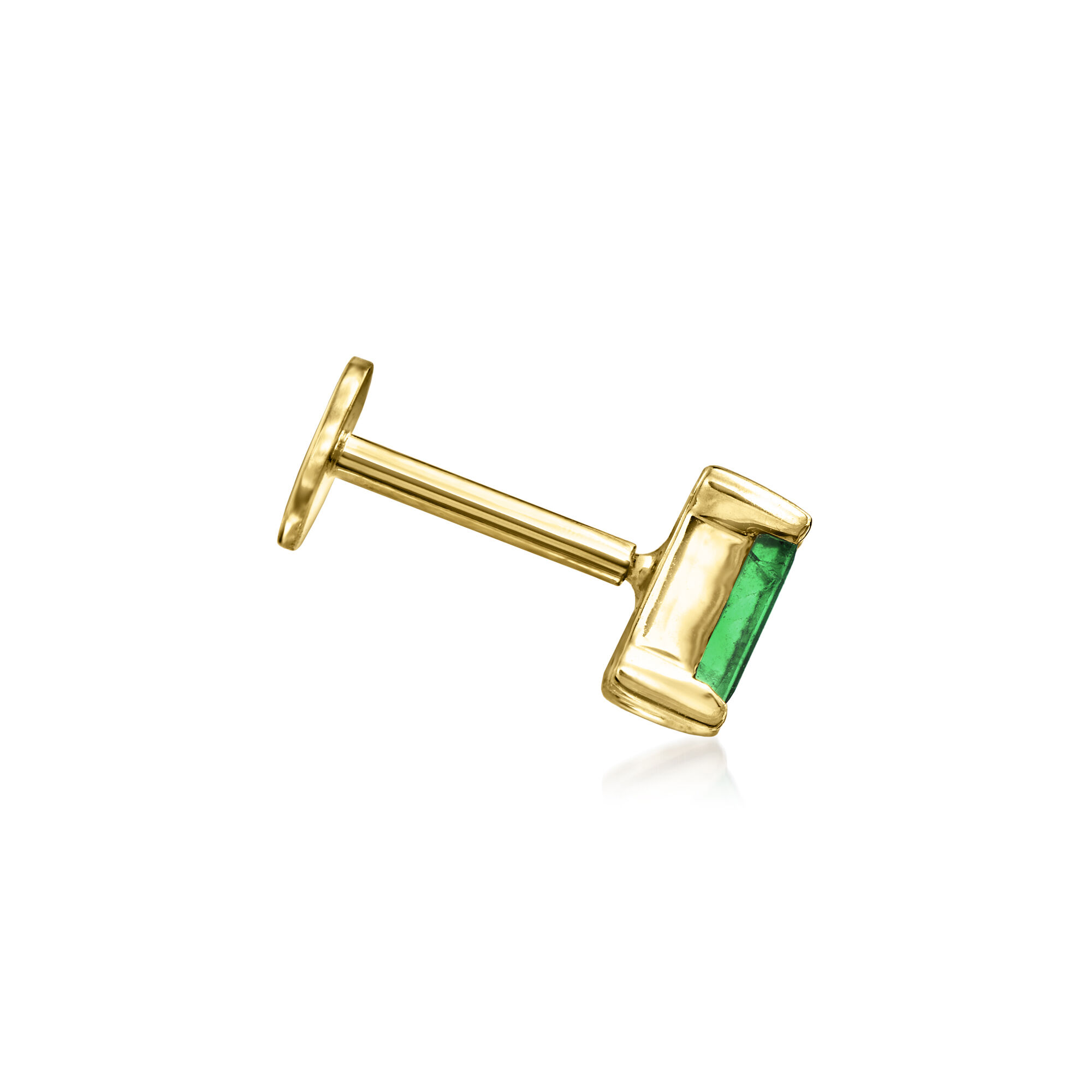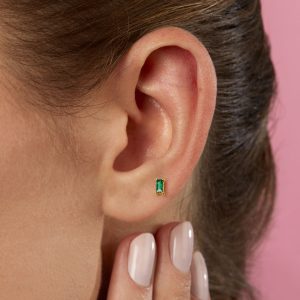 Baguette Emerald Single Flat-Back Stud Earring in 14kt Yellow Gold