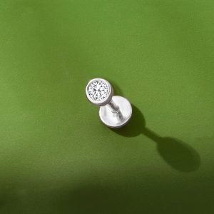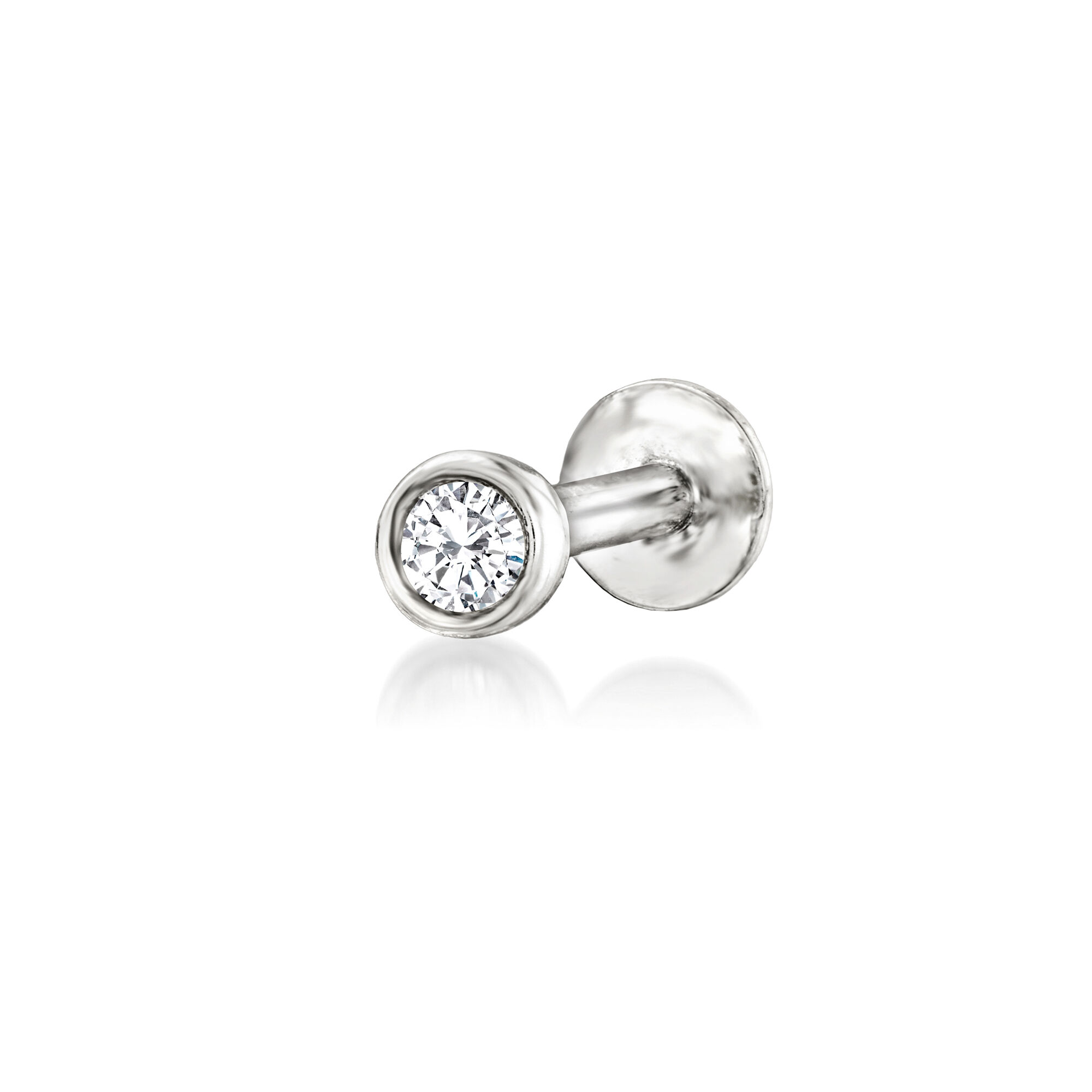 Bezel-Set Diamond Single Flat-Back Stud Earring in Sterling Silver