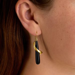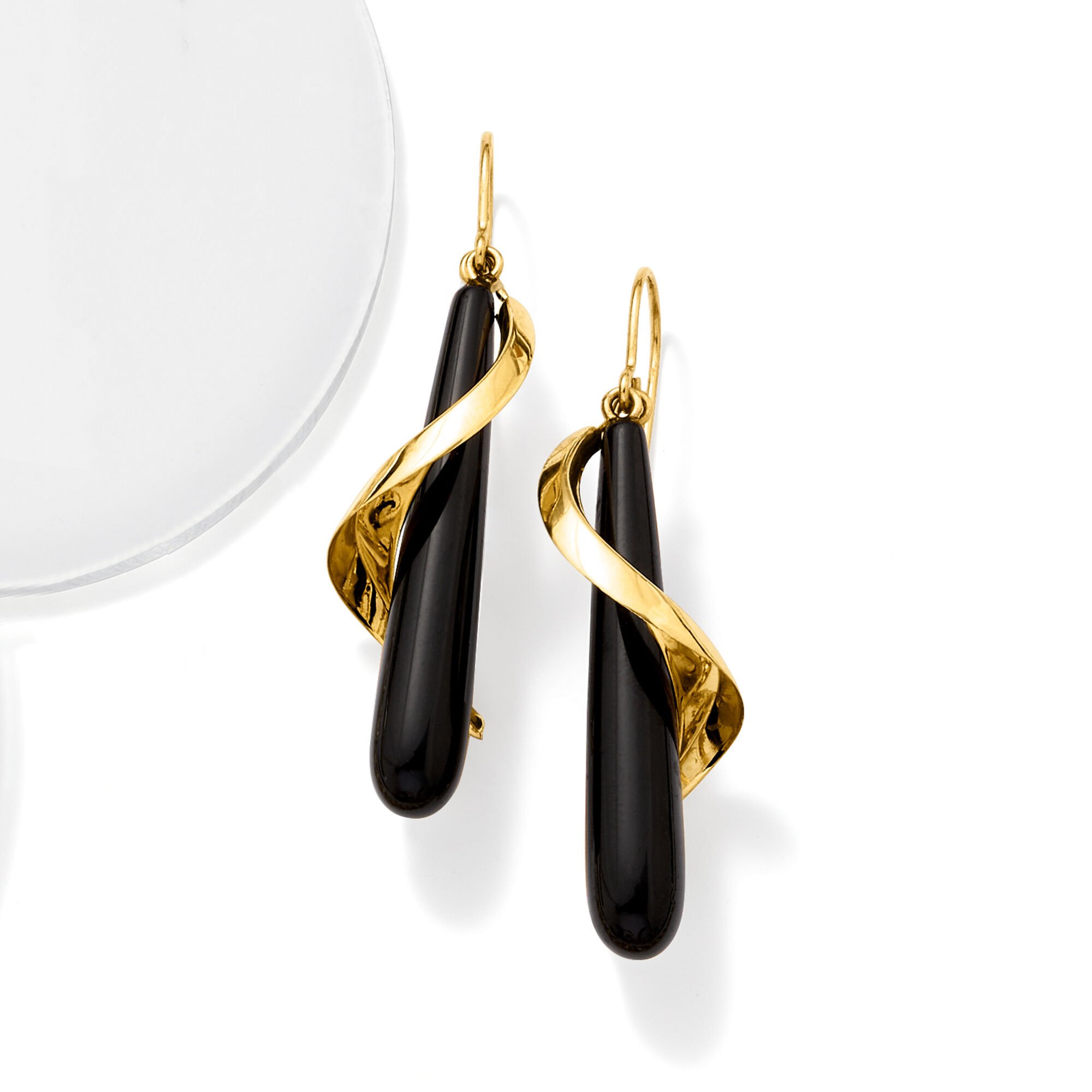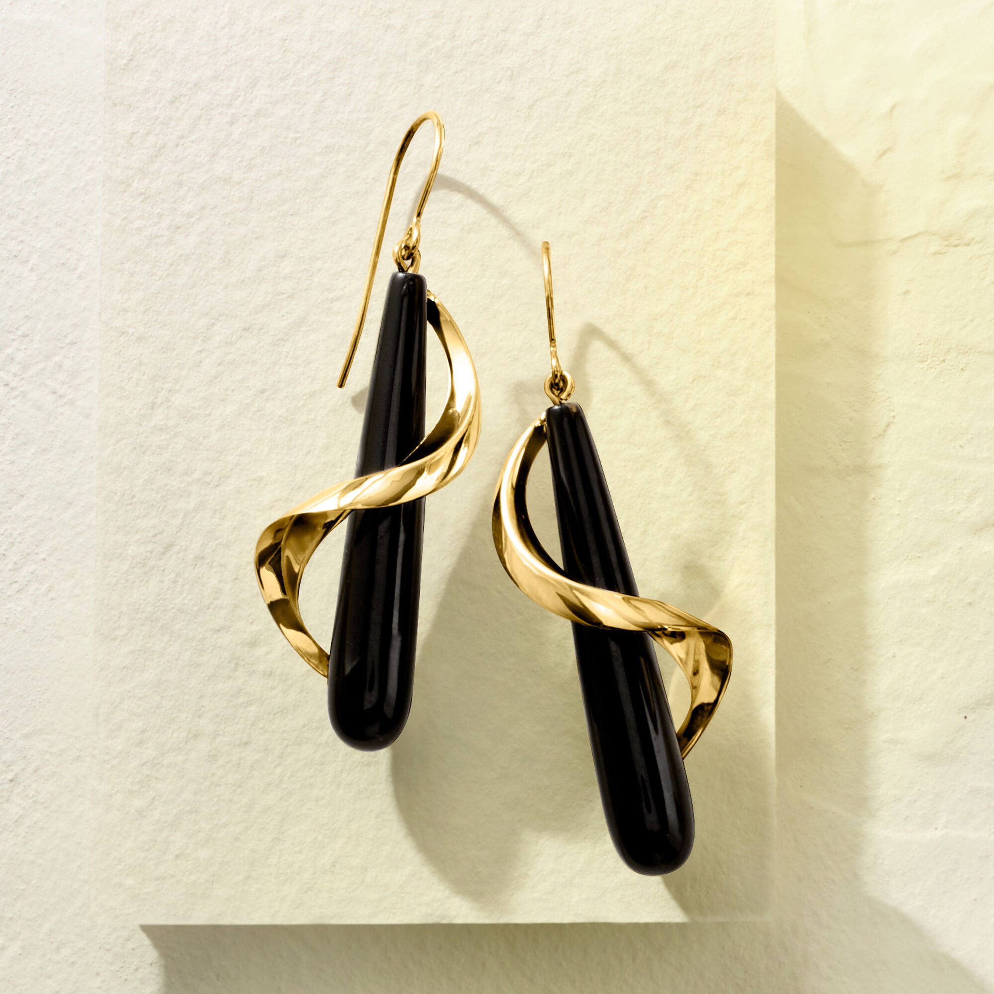 Black Onyx Spiral Drop Earrings in 14kt Yellow Gold