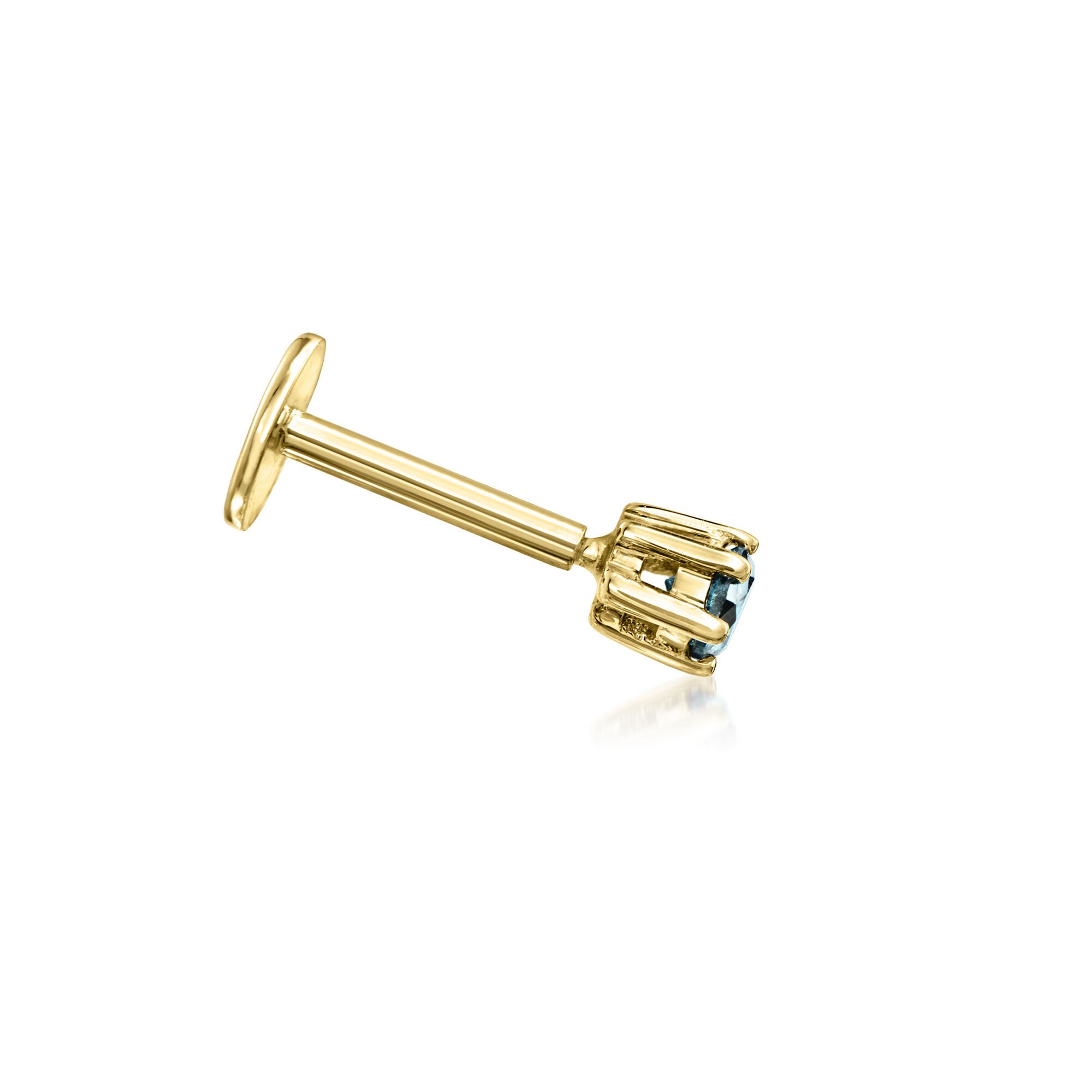 Blue Diamond Single Flat-Back Stud Earring in 14kt Yellow Gold