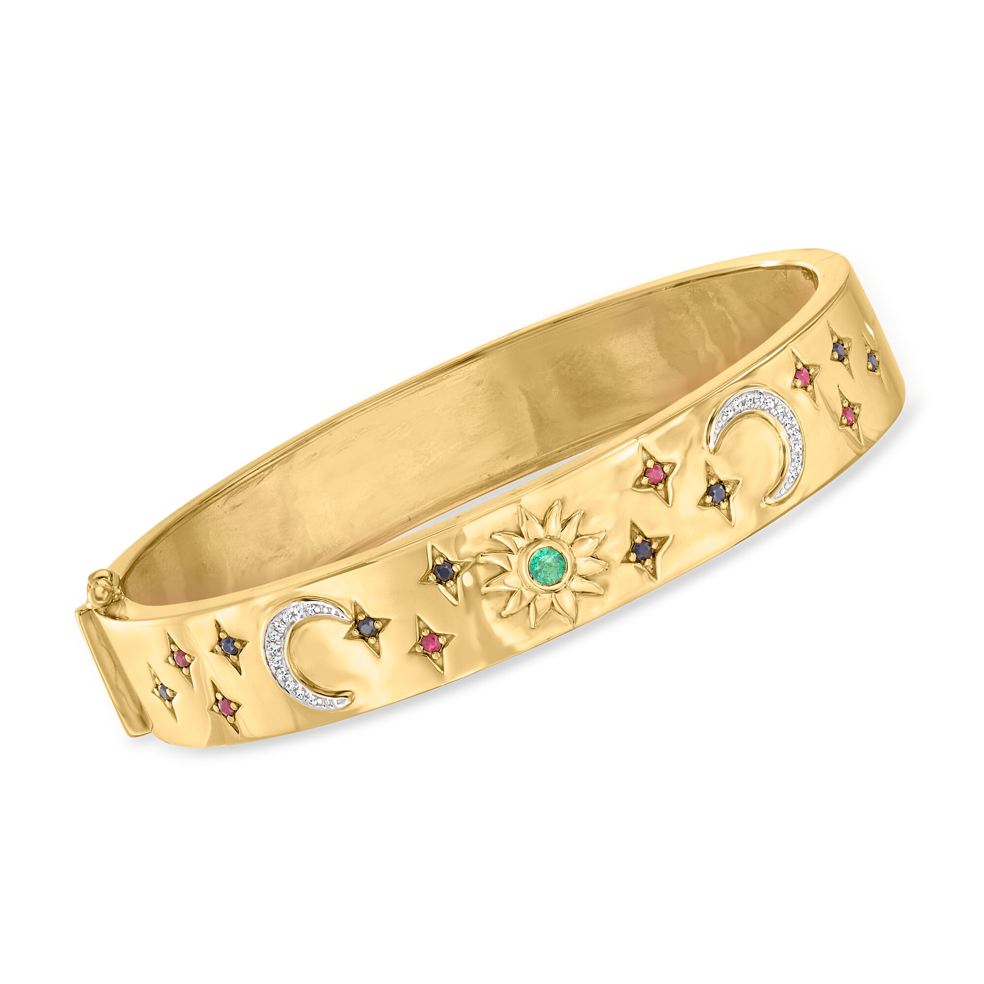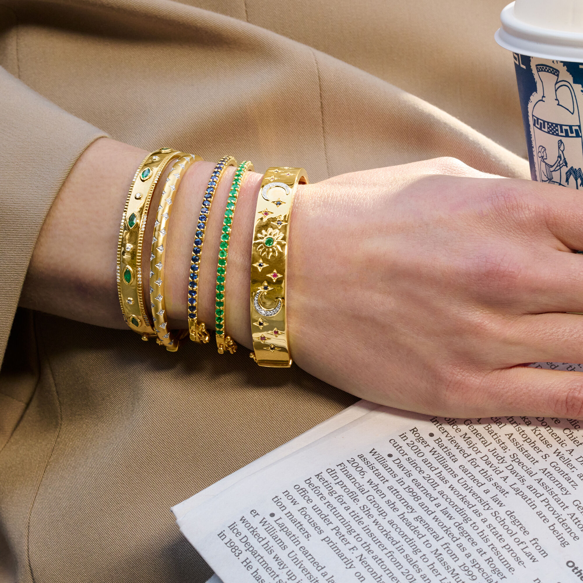 “Broadway Stack” of Five Bangle Bracelets in 18kt Gold Over Sterling