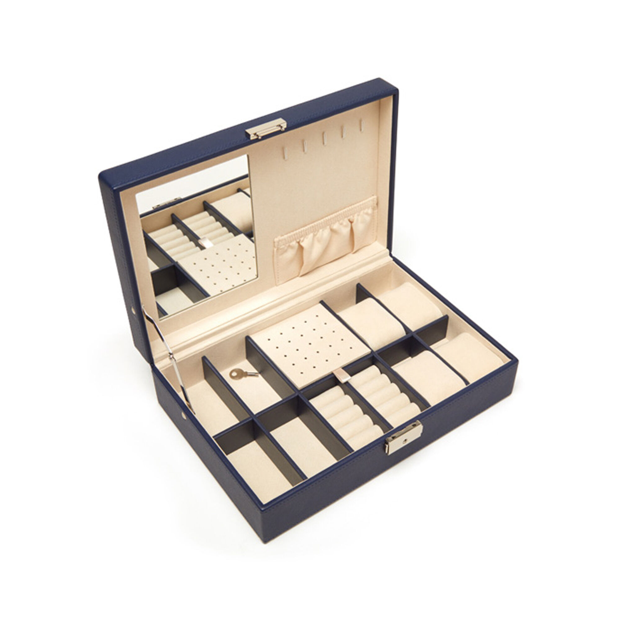 Brouk & Co. “Riley” Navy-Blue Faux Leather Single-Hinged Jewelry Box