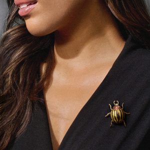 C. 1900 Vintage Painted Portrait Pin with Enamel and 1.10 ct. t.w. Diamonds in 15kt Yellow Gold