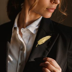 C. 1980 Vintage Tiffany Jewelry 14kt Yellow Gold Feather Pin