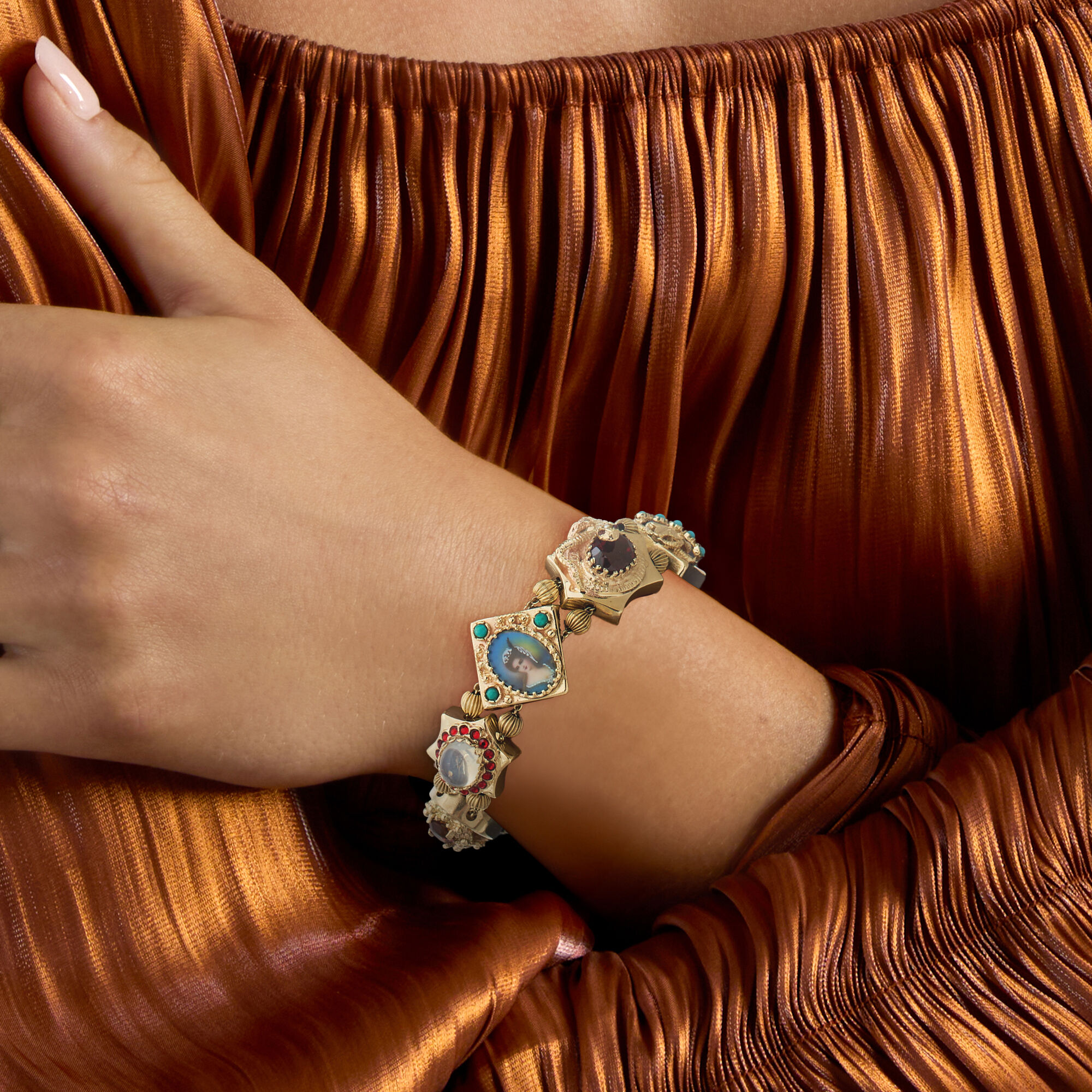 C. 1980 Vintage 3.84 ct. t.w. Multi-Gemstone Slide Charm Bracelet in 14kt Yellow Gold. 7.5″