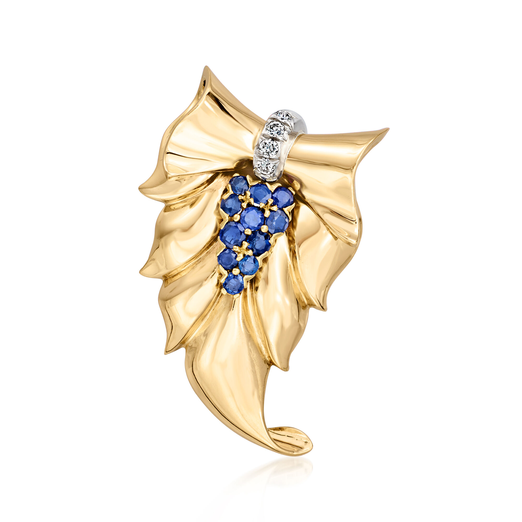 C. 1960 Vintage 1.25 ct. t.w. Sapphire and .25 ct. t.w. Diamond Bow Pin in 14kt Yellow Gold