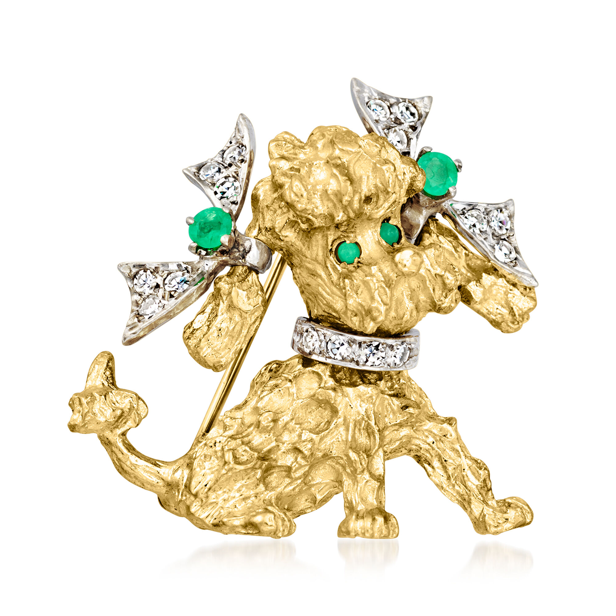 C. 1970 Vintage .30 ct. t.w. Diamond and .10 ct. t.w. Emerald Poodle Pin with Green Chalcedony in 14kt Yellow Gold