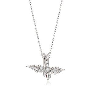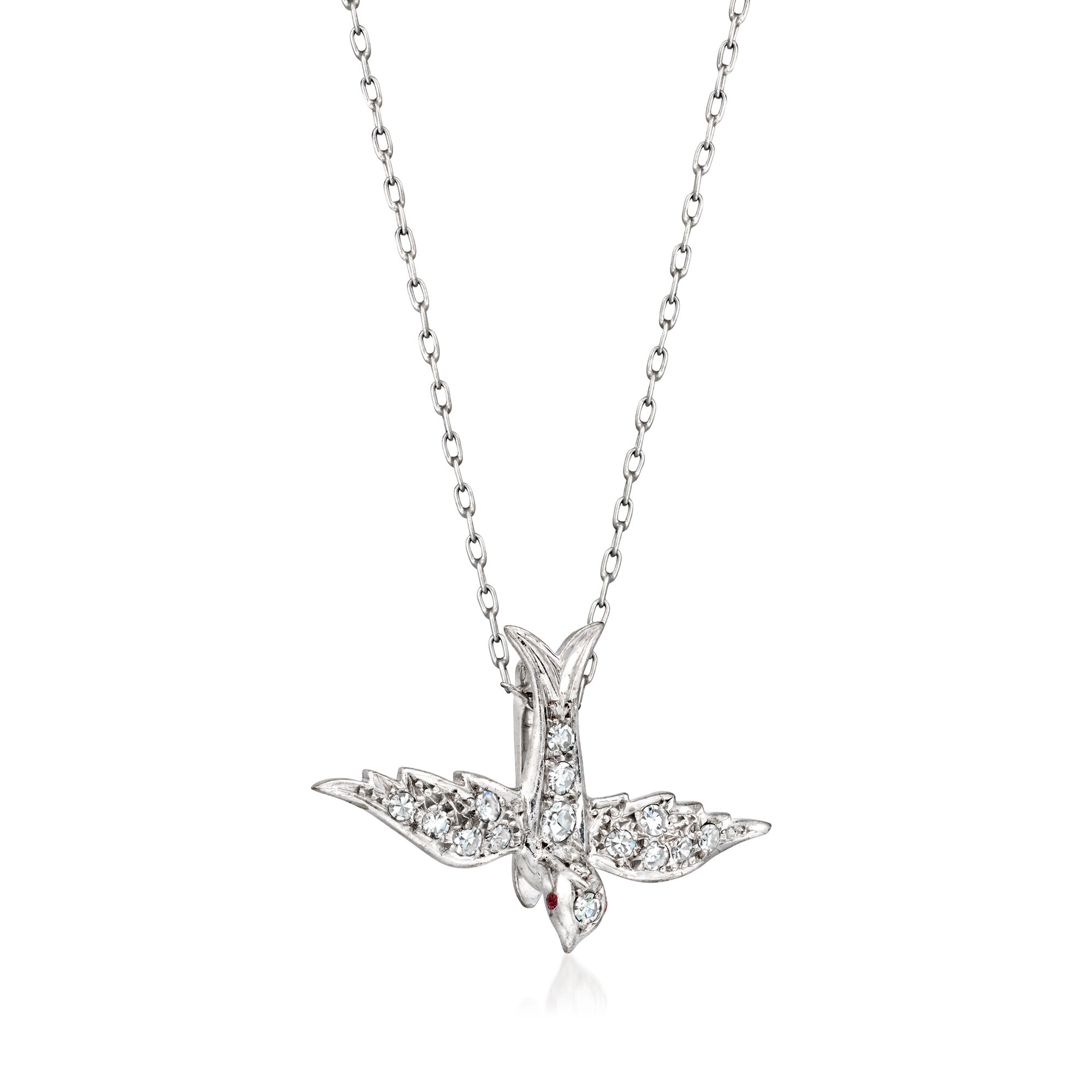 C. 1970 Vintage .35 ct. t.w. Diamond Bird Pendant Necklace with Rubies in 18kt White Gold. 17.75″