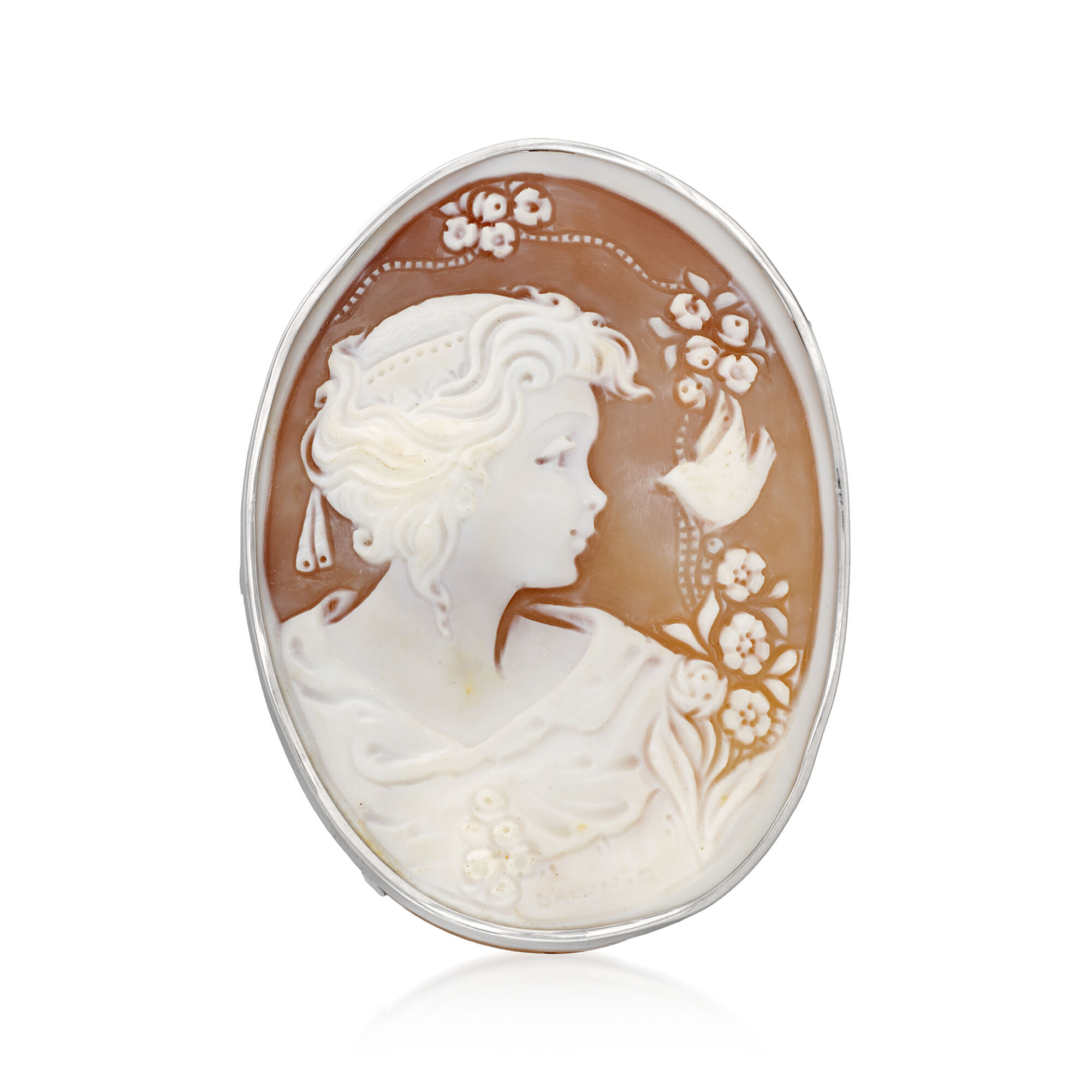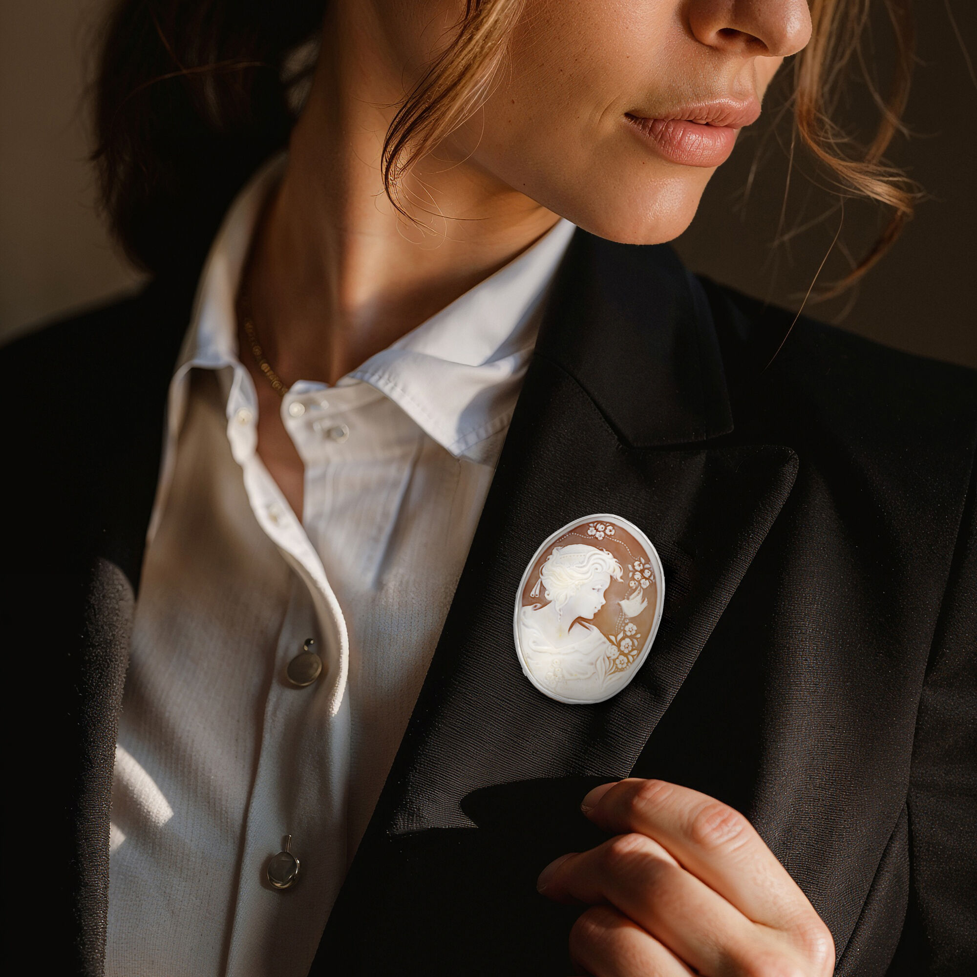 C. 1970 Vintage Brown Shell Cameo Pin/Pendant in Platinum