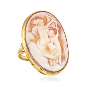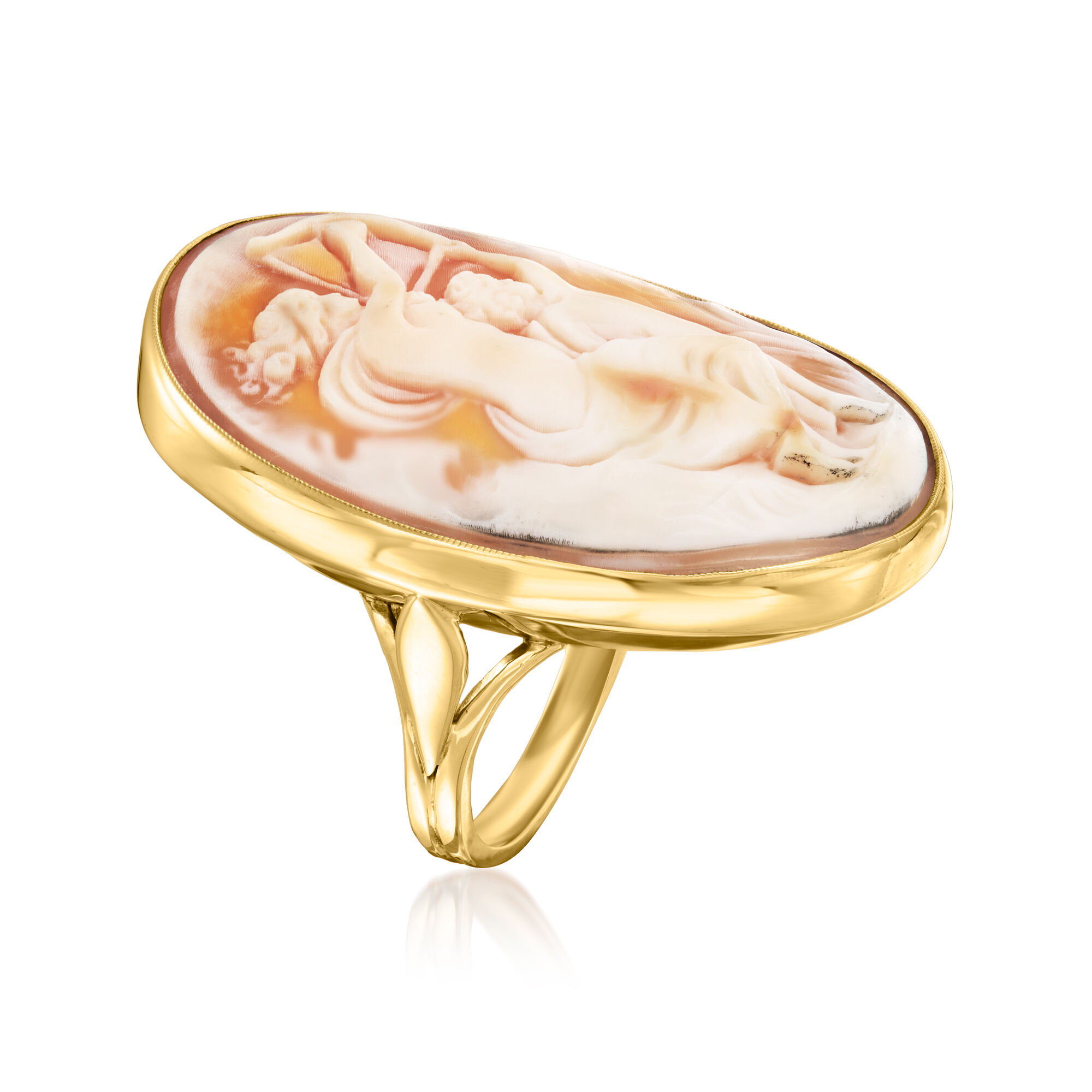 C. 1970 Vintage Brown Shell Cameo Ring in 14kt Yellow Gold. Size 7
