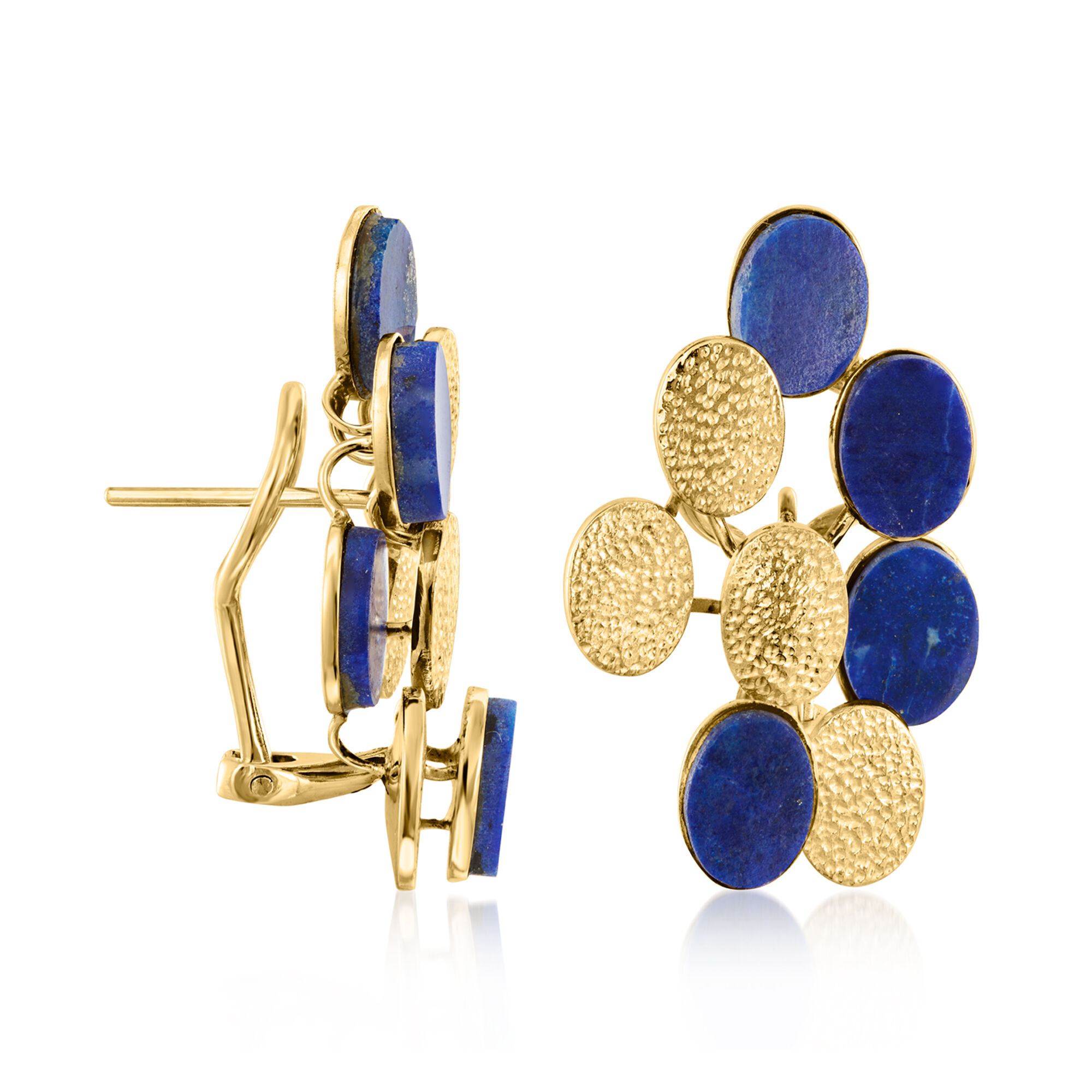 C. 1970 Vintage Lapis Geometric Earrings in 14kt Yellow Gold