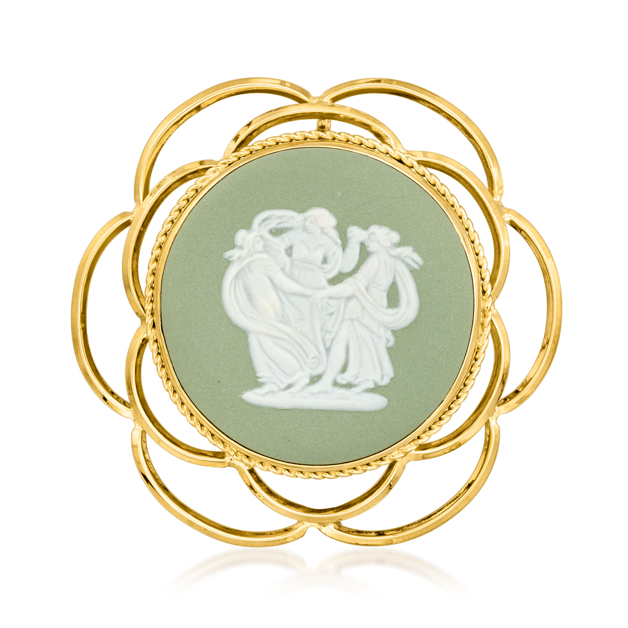 C. 1970 Vintage Wedgwood Three Graces Cameo Pin/Pendant in 14kt Yellow Gold