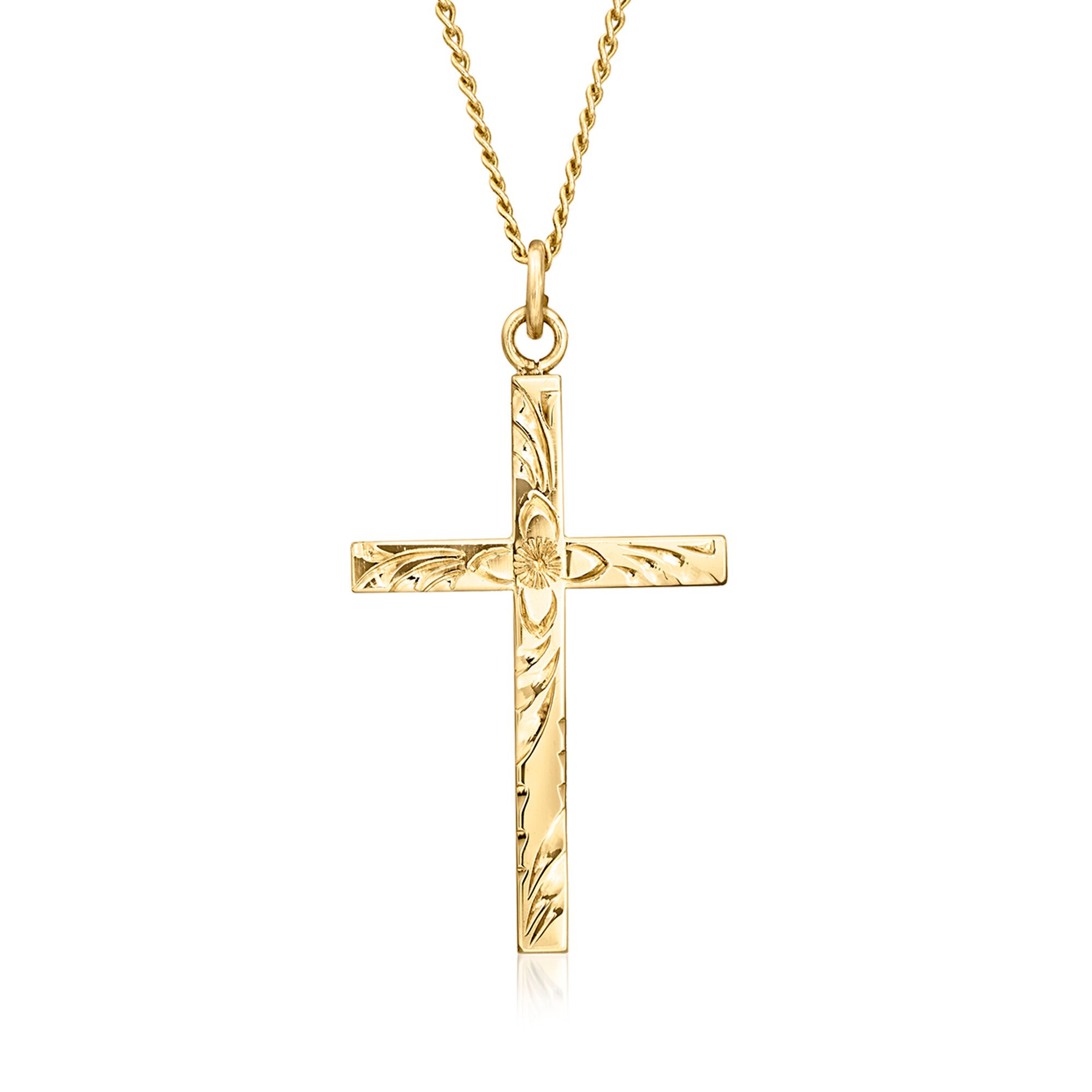 C. 1980 Vintage 10kt Yellow Gold Cross Pendant Necklace. 18″