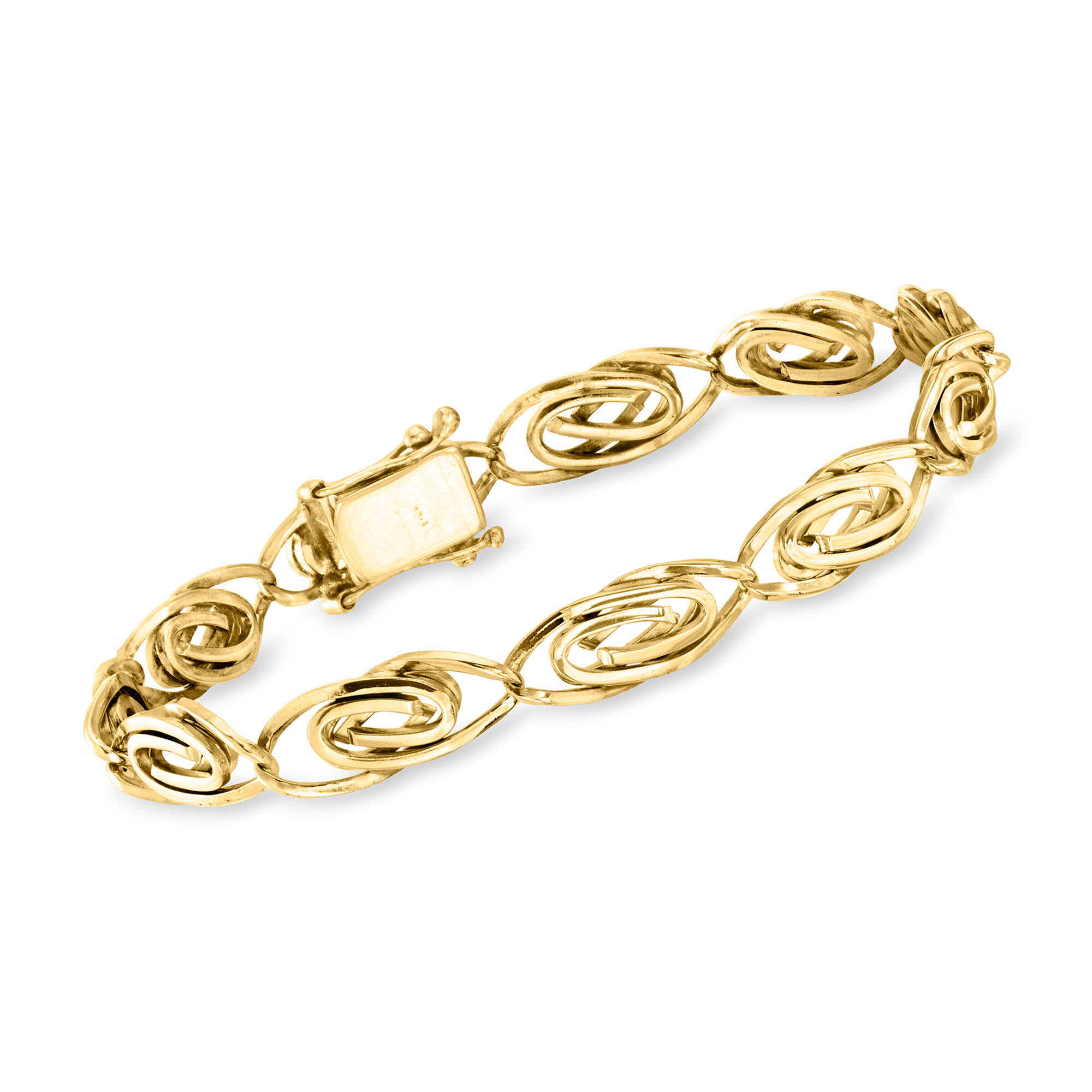 C. 1980 Vintage 14kt Yellow Gold Swirl-Link Bracelet. 7.75″