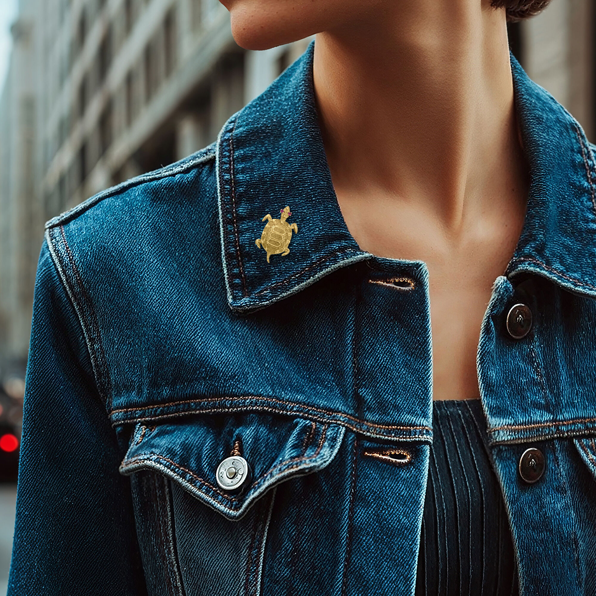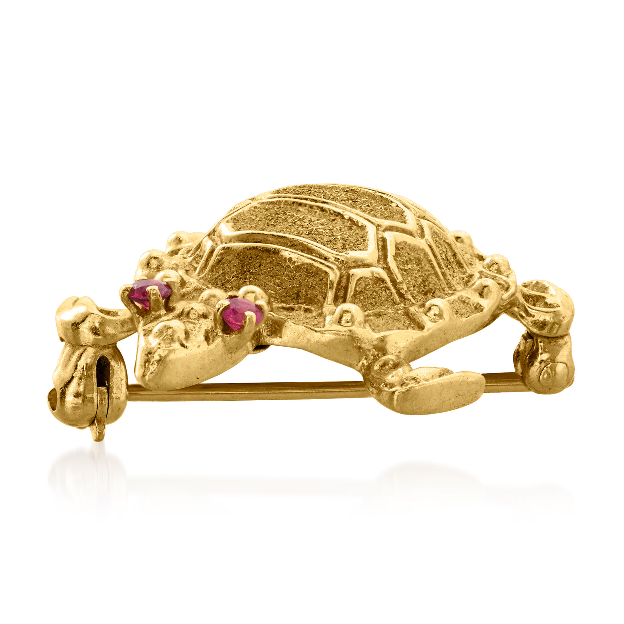 C. 1980 Vintage 14kt Yellow Gold Turtle Pin with Rubies