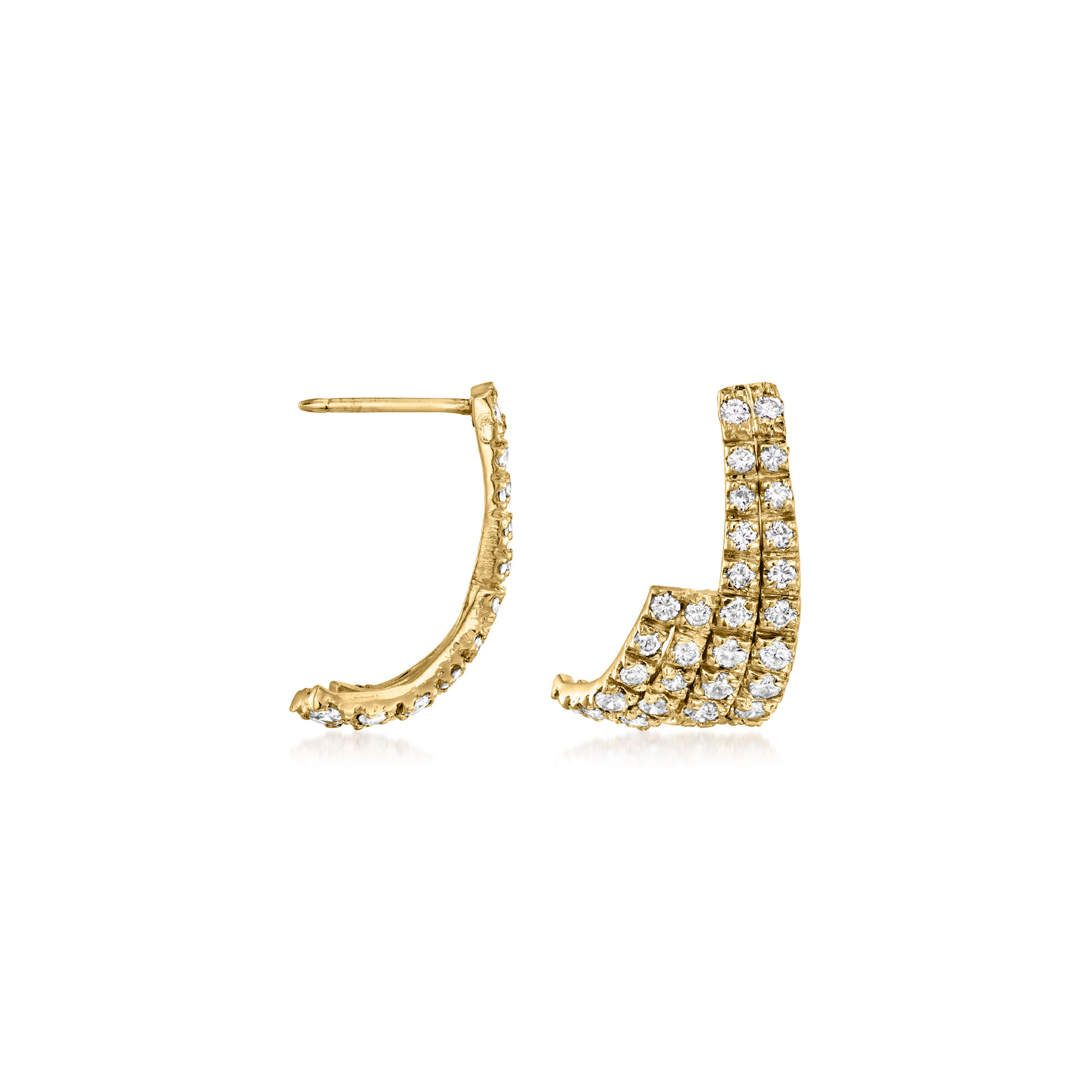 C. 1980 Vintage 2.00 ct. t.w. Diamond Curved Earrings in 14kt Yellow Gold