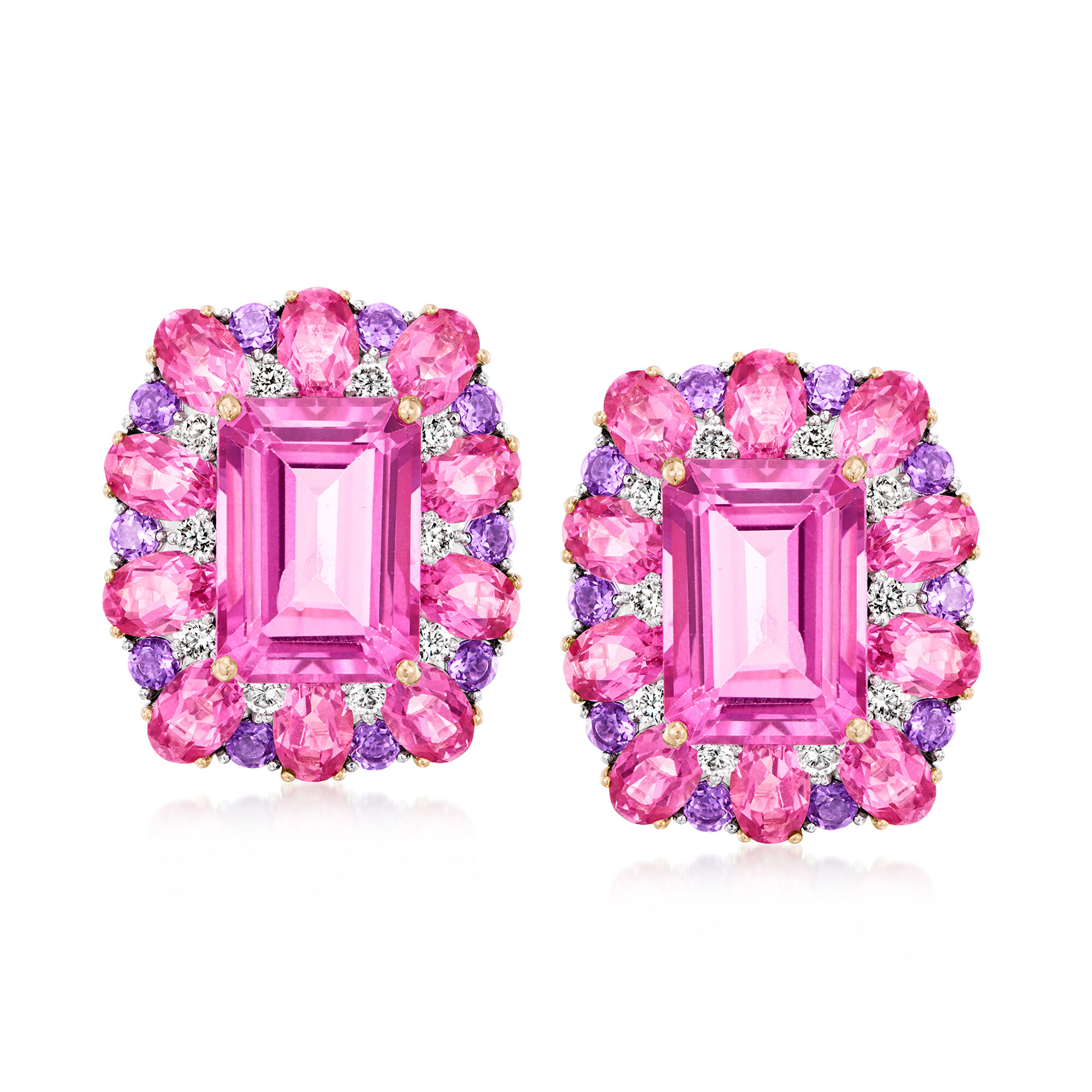 C. 1980 Vintage 29.00 ct. t.w. Pink Topaz, 1.20 ct. t.w. Amethyst and .80 ct. t.w. Diamond Earrings in 18kt White Gold