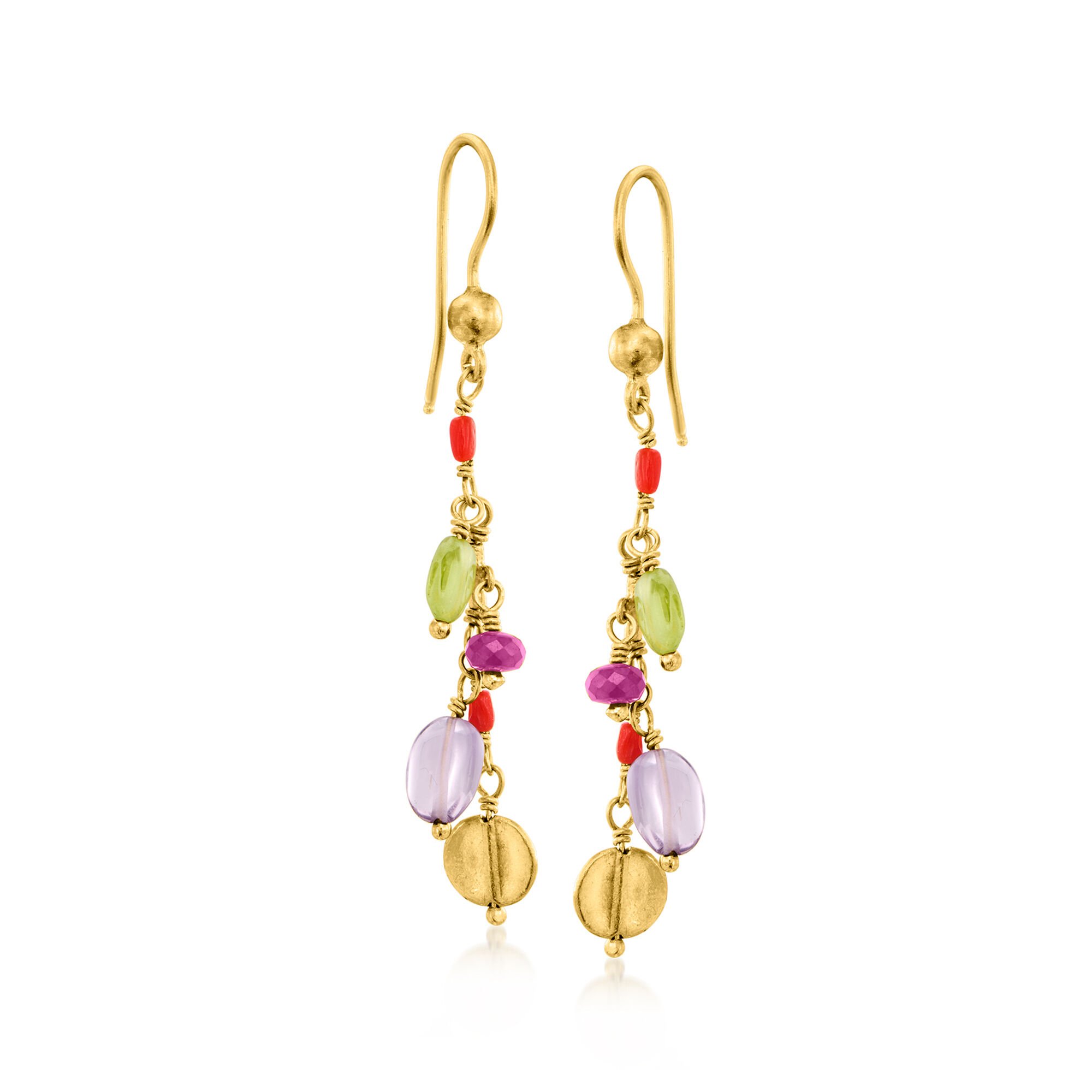 C. 1980 Vintage 3.60 ct. t.w. Multi-Gemstone Drop Earrings in 24kt Yellow Gold