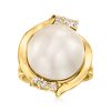 C. 1990 Vintage 13mm Cultured Pearl and .25 ct. t.w. Diamond Ring in 14kt Yellow Gold. Size 6.5