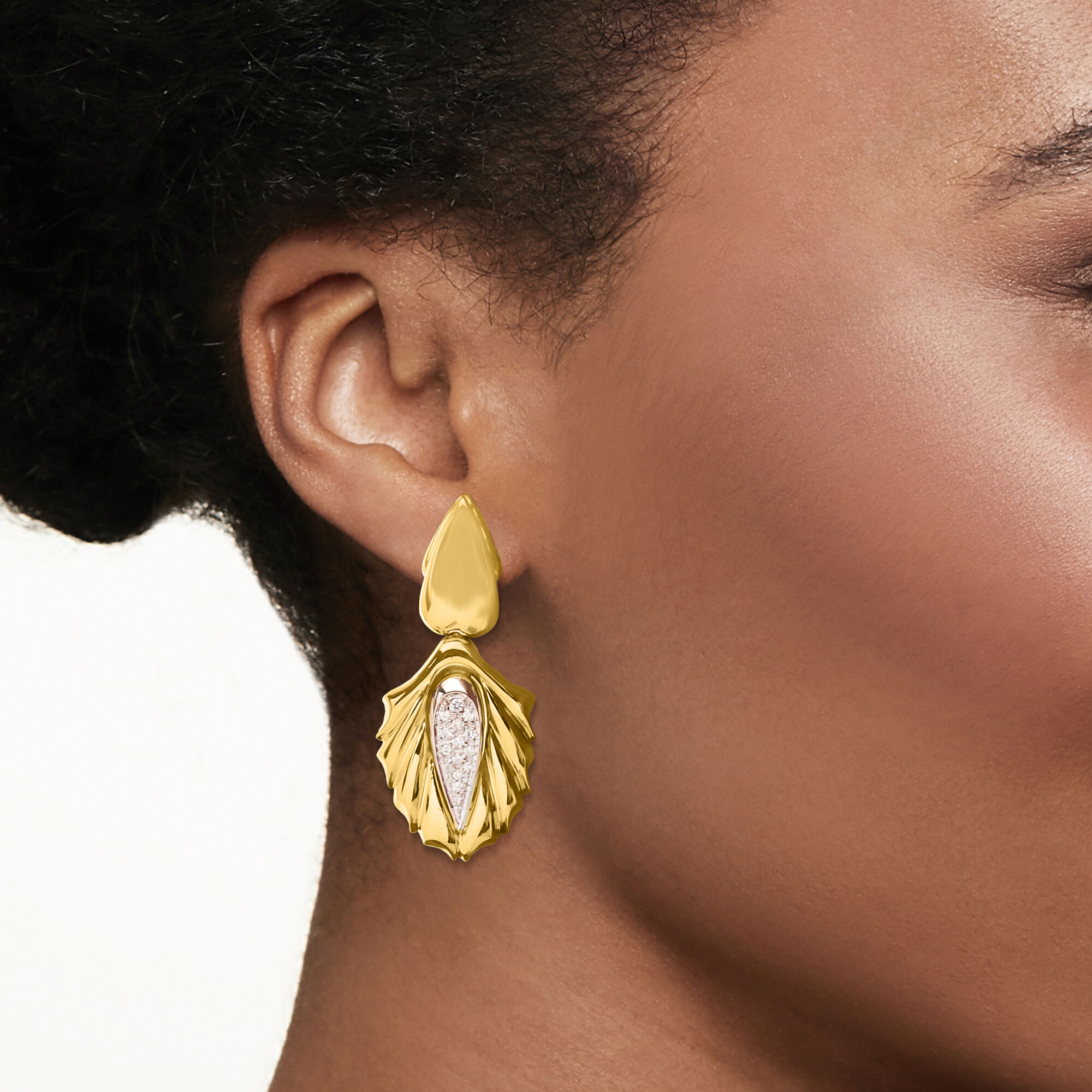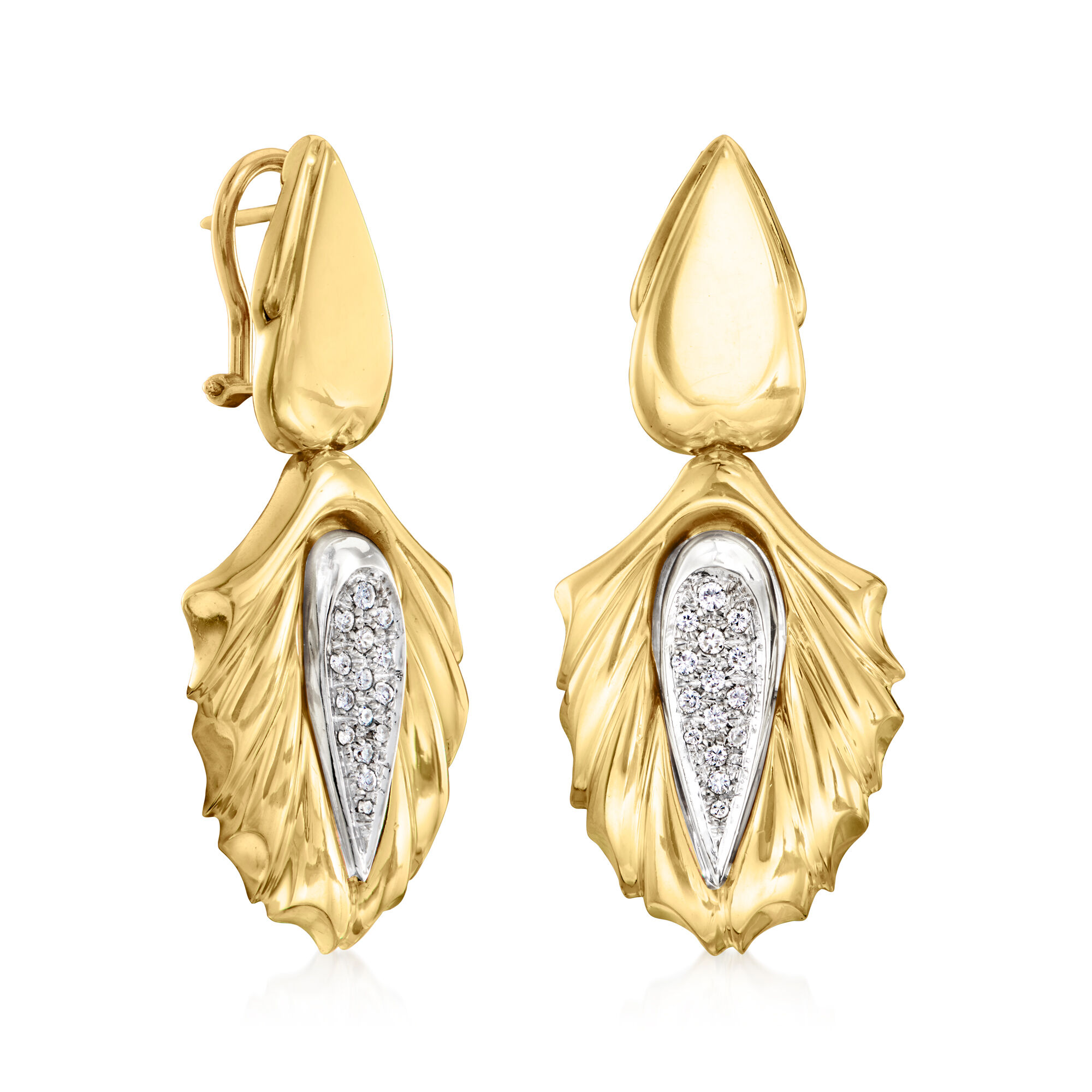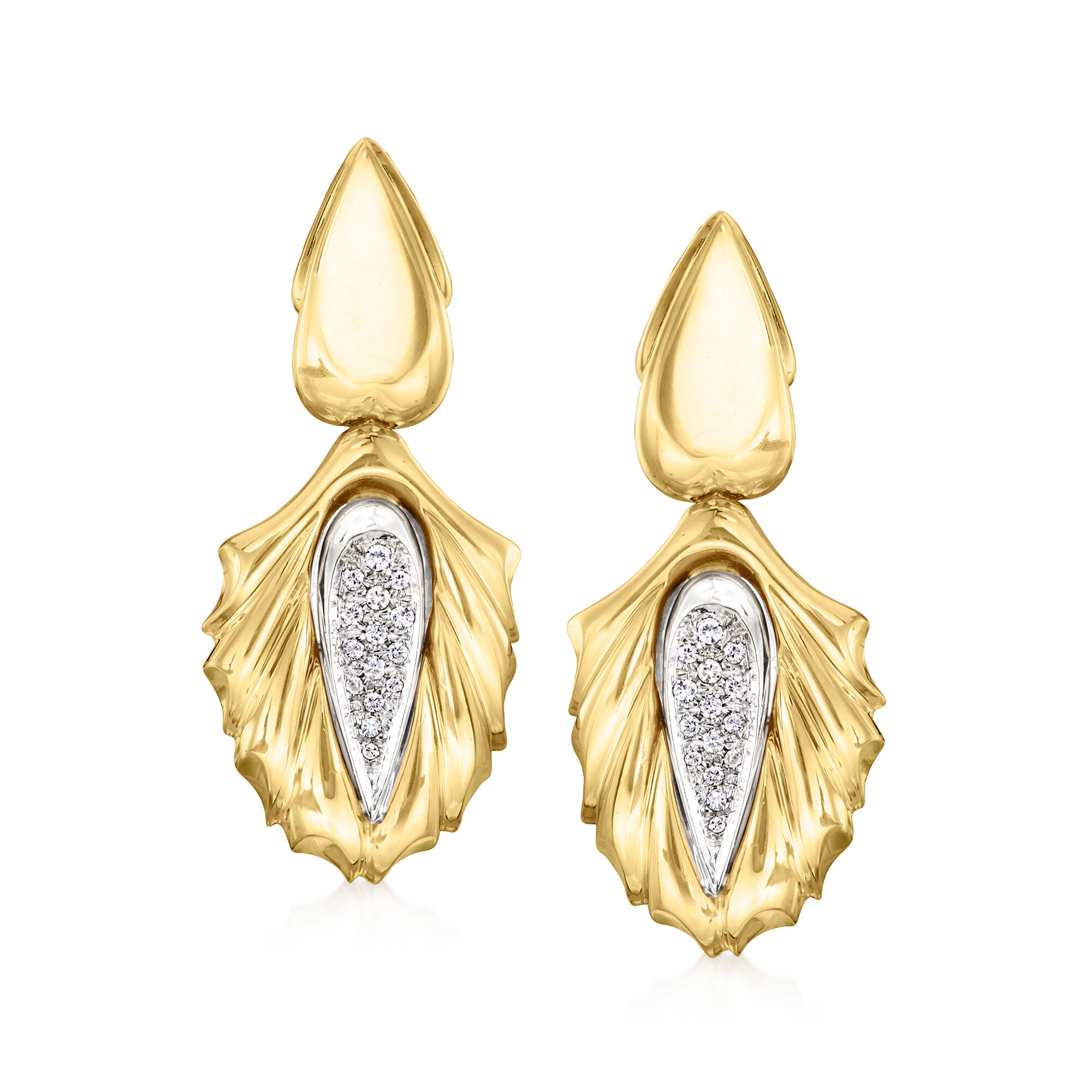 C. 1980 Vintage .50 ct. t.w. Diamond Pear-Shaped Drop Earrings in 18kt Two-Tone Gold