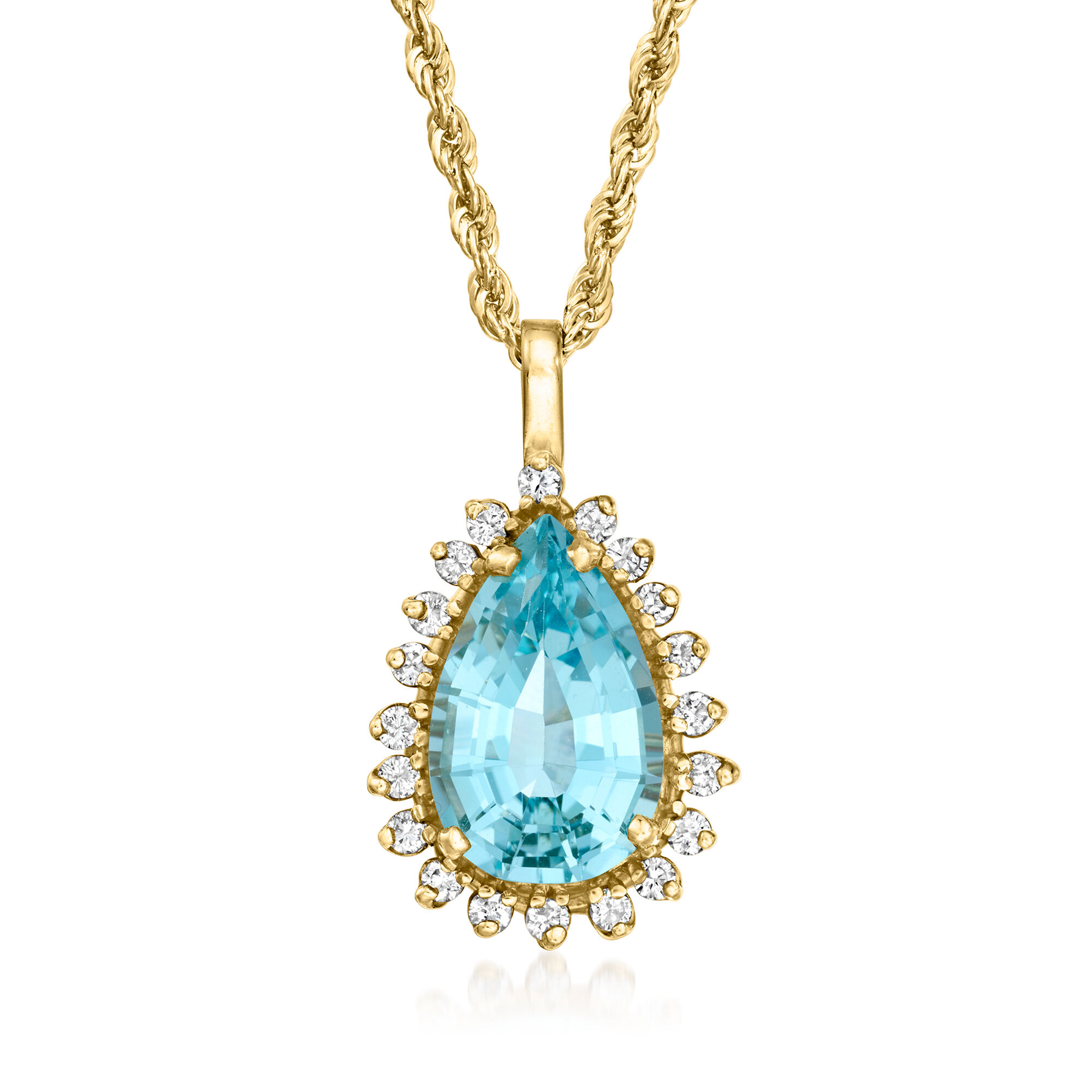 C. 1980 Vintage 7.50 Carat Sky Blue Topaz Pendant Necklace with .60 ct. t.w. Diamonds in 14kt Yellow Gold. 18″