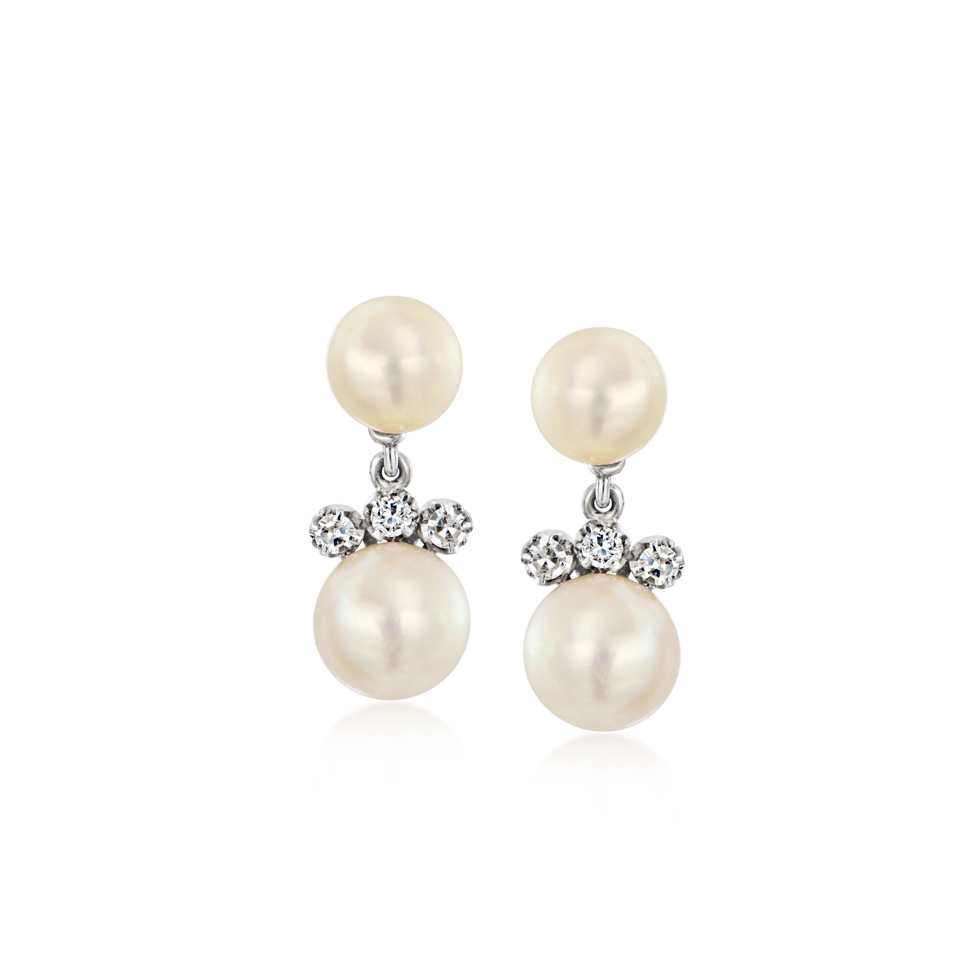 C. 1980 Vintage 7-8.5mm Cultured Pearl and .30 ct. t.w. Diamond Drop Earrings in 18kt White Gold