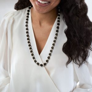 C. 1990 Vintage 9.9-10mm Onyx Bead Necklace with Sterling Silver. 29″