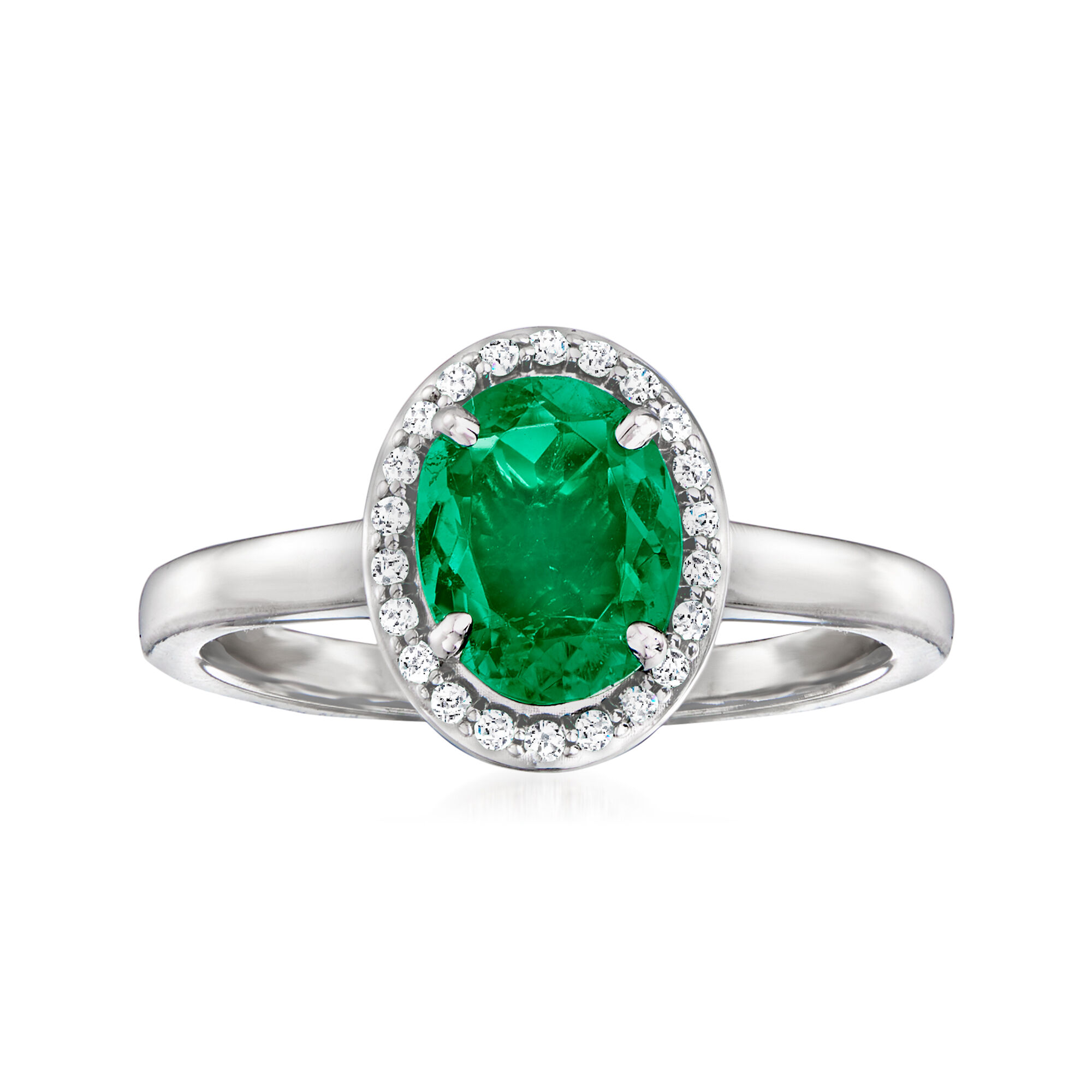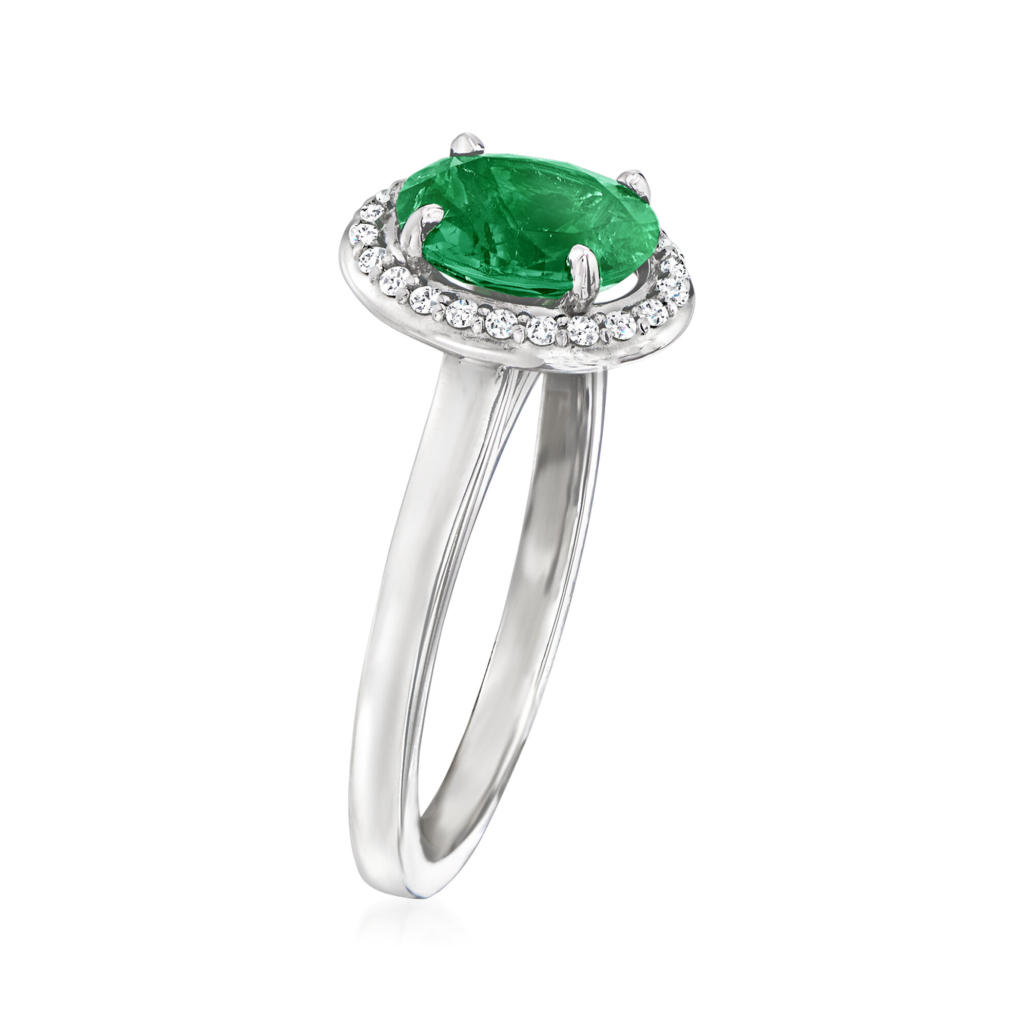 C. 1980 Vintage .93 Carat Emerald and .16 ct. t.w. Diamond Ring in 14kt White Gold. Size 5