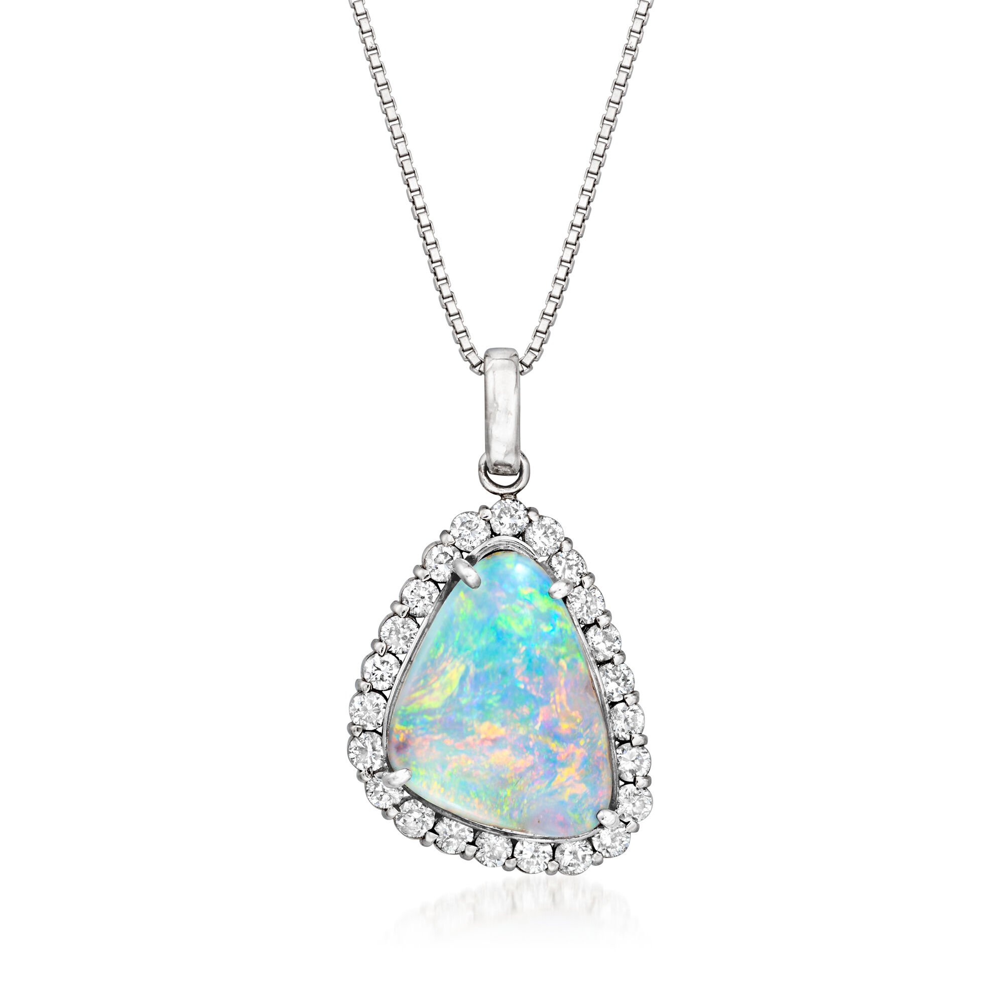 C. 1980 Vintage Opal Pendant Necklace with .53 ct. t.w. Diamonds in Platinum. 16″