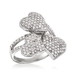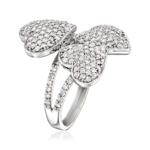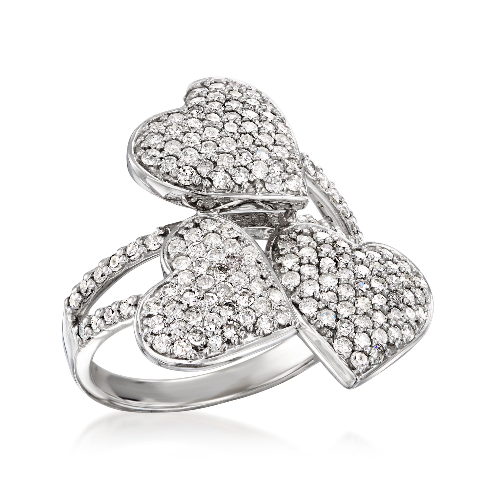 C. 1990 Vintage 1.50 ct. t.w. Diamond Hearts Ring in 14kt White Gold. Size 6