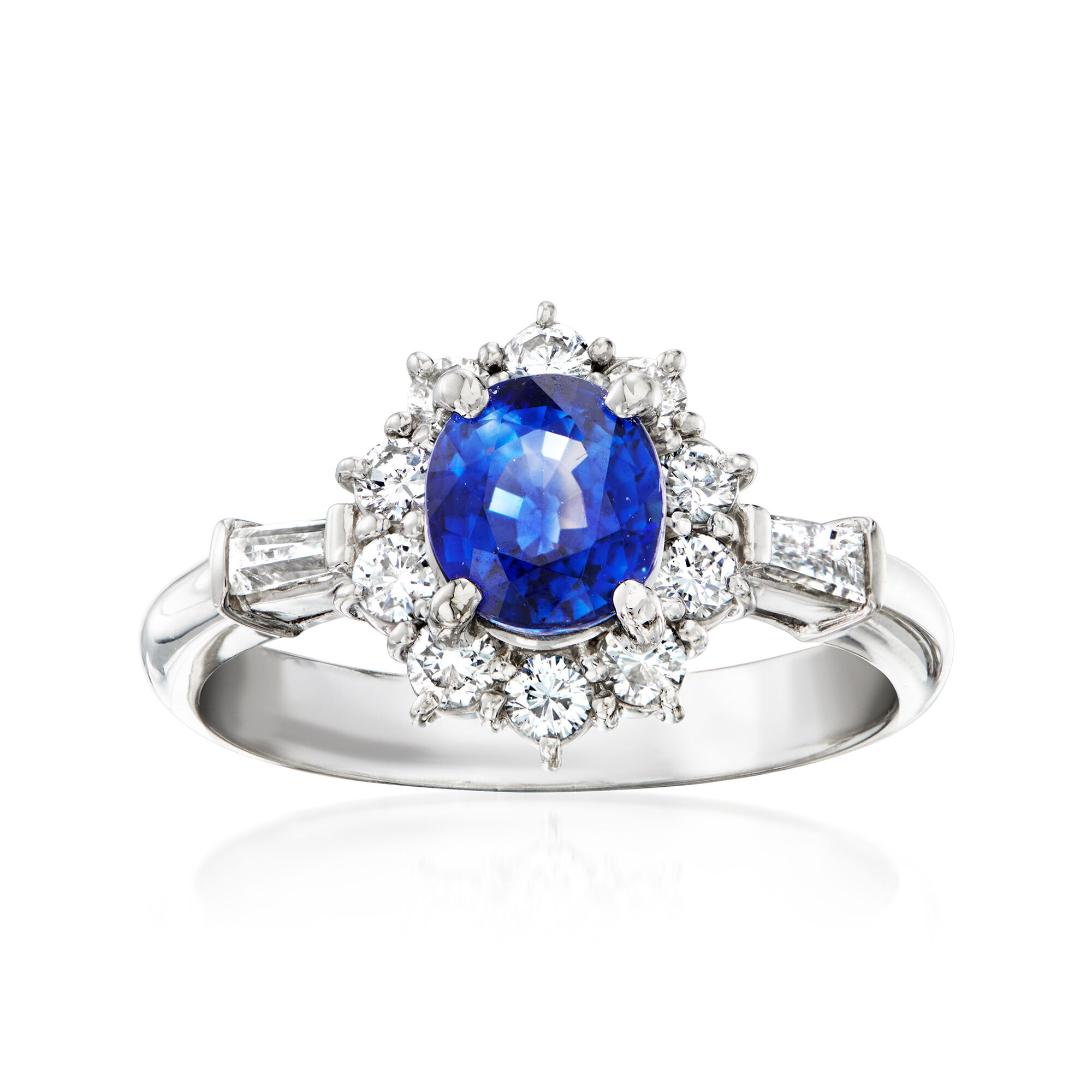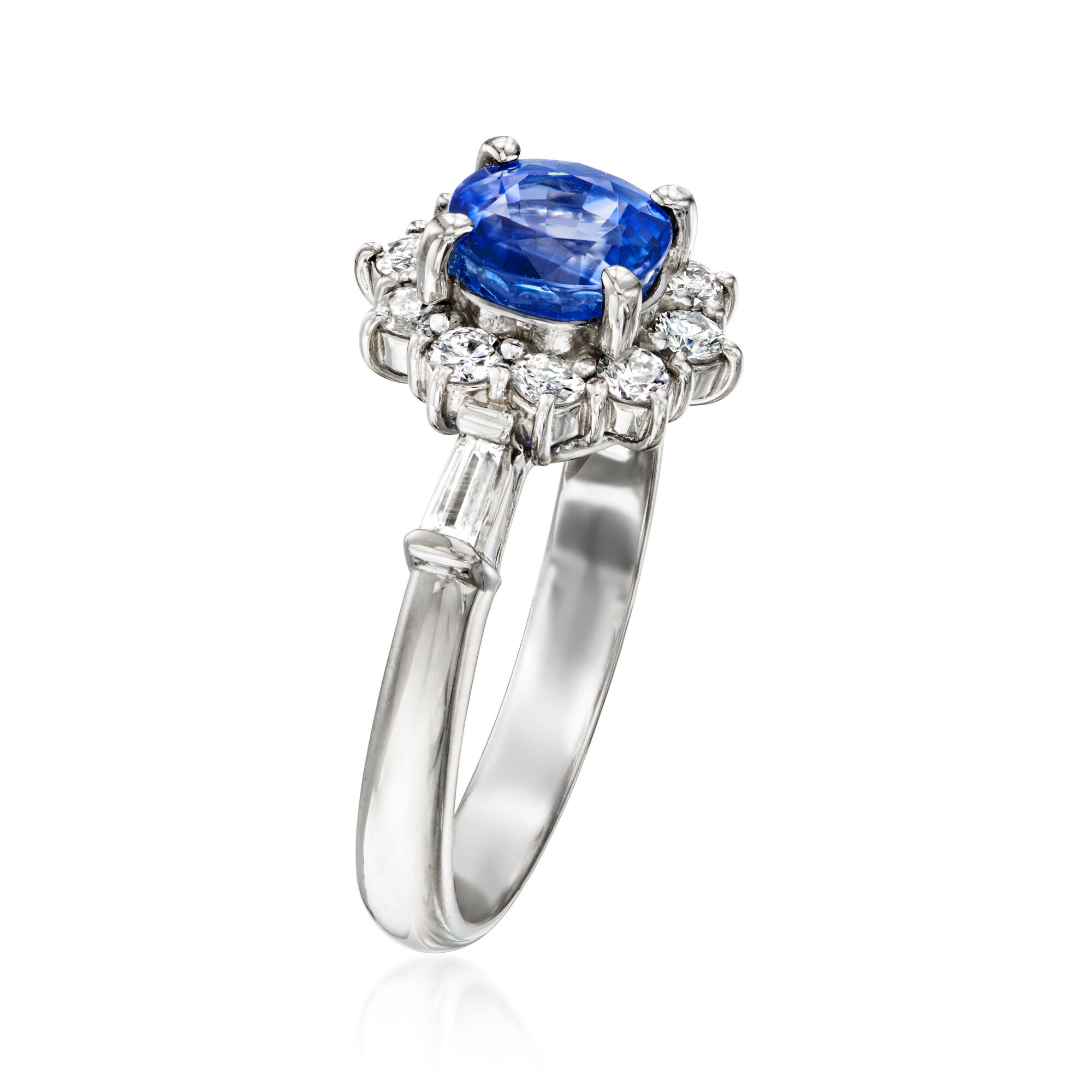 C. 1990 Vintage 1.61 Carat Sapphire and .60 ct. t.w. Diamond Ring in Platinum. Size 7