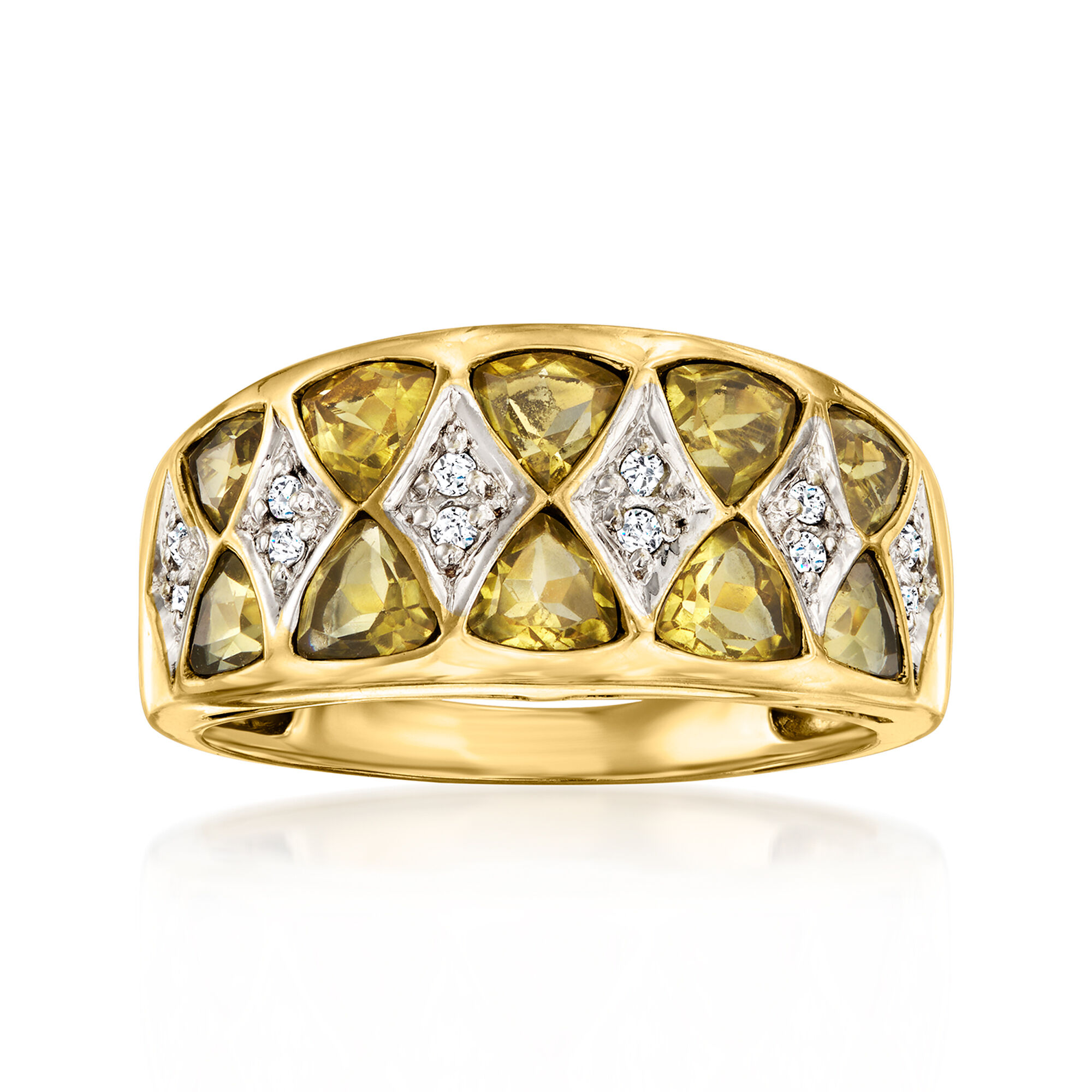 C. 1990 Vintage 2.00 ct. t.w. Golden Beryl Ring with .12 ct. t.w. Diamonds in 14kt Yellow Gold. Size 8