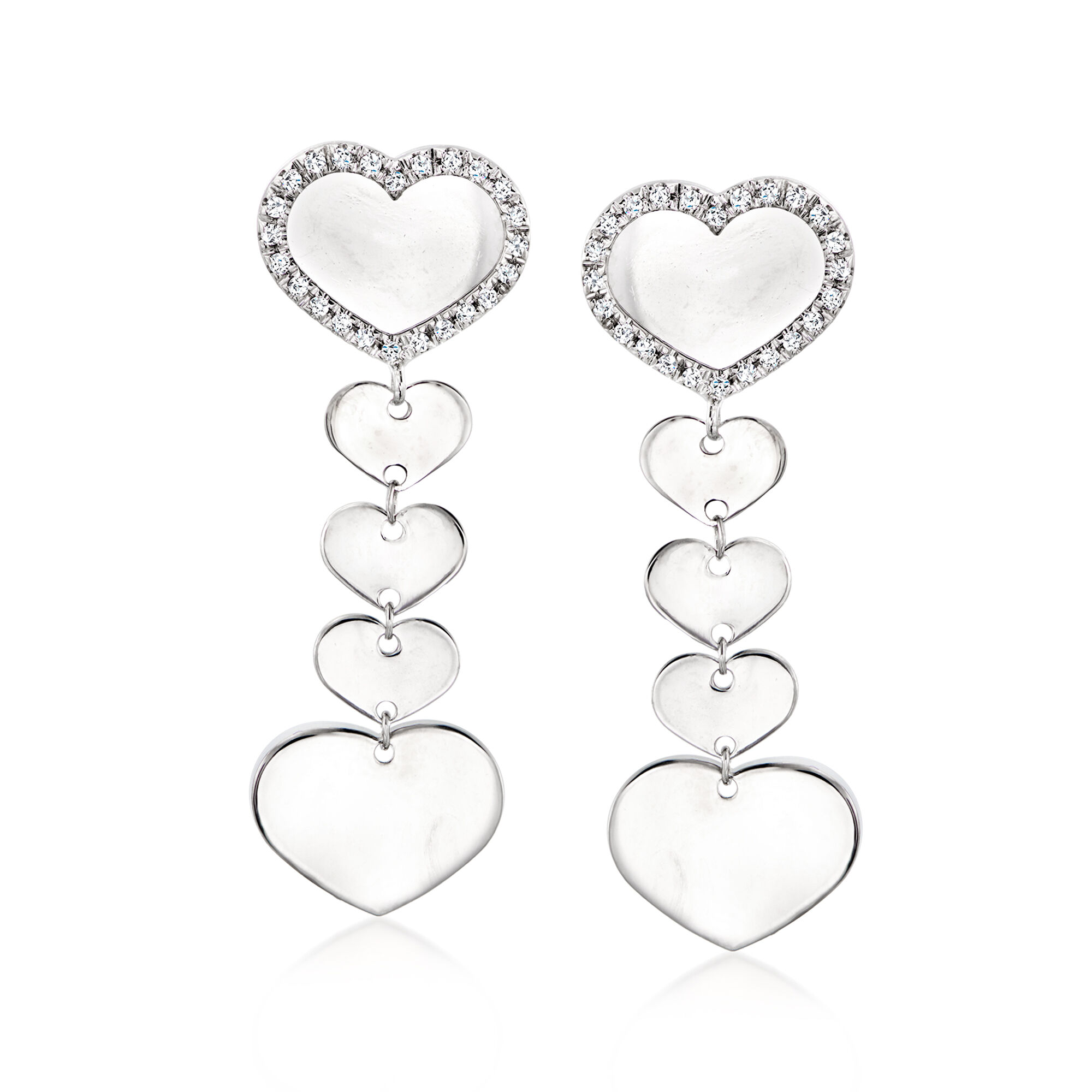 C. 1990 Vintage .48 ct. t.w. Diamond Heart Drop Earrings in 18kt White Gold