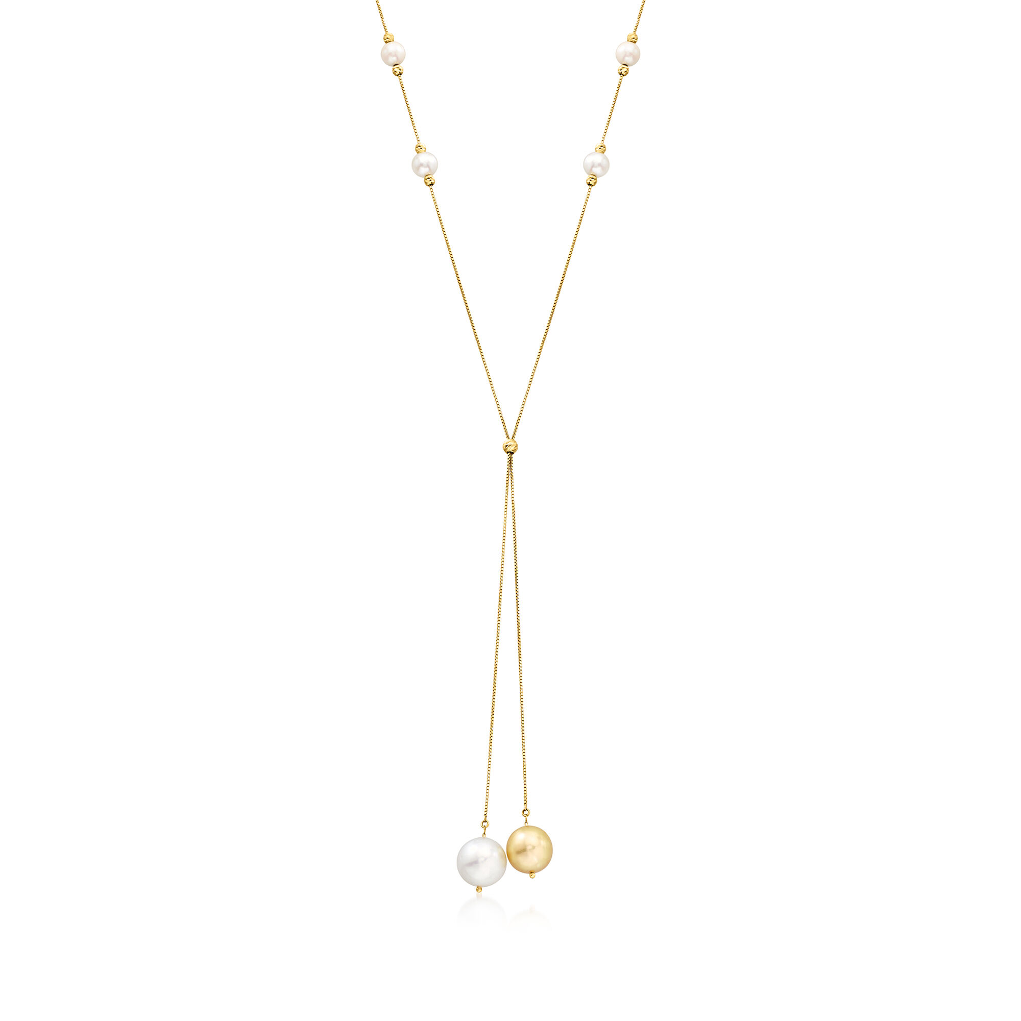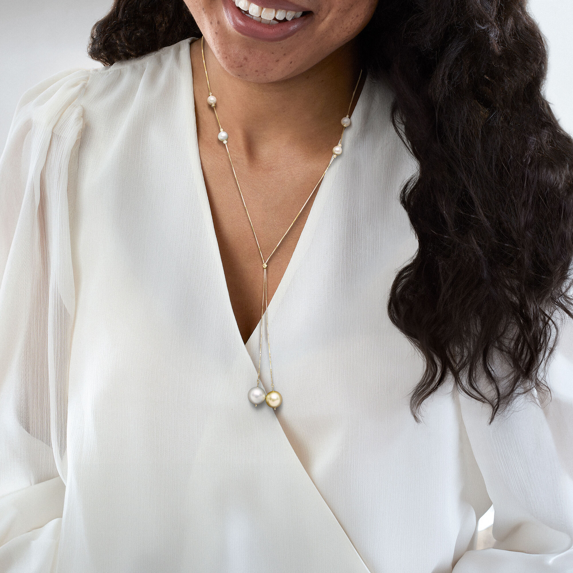 C. 1990 Vintage 6.9-12mm Cultured White and Golden Pearl Bolo-Style Necklace in 18kt Yellow Gold. 26″