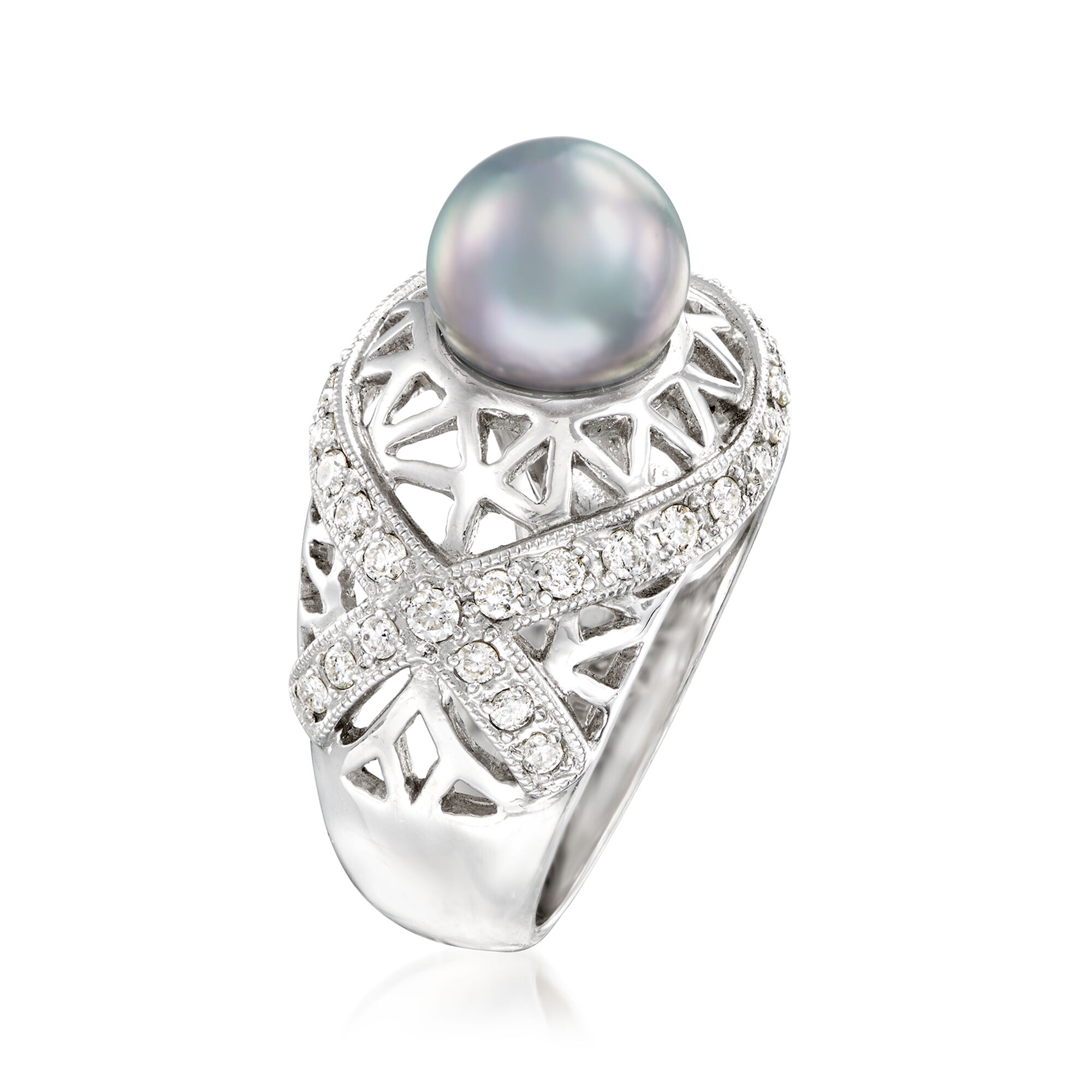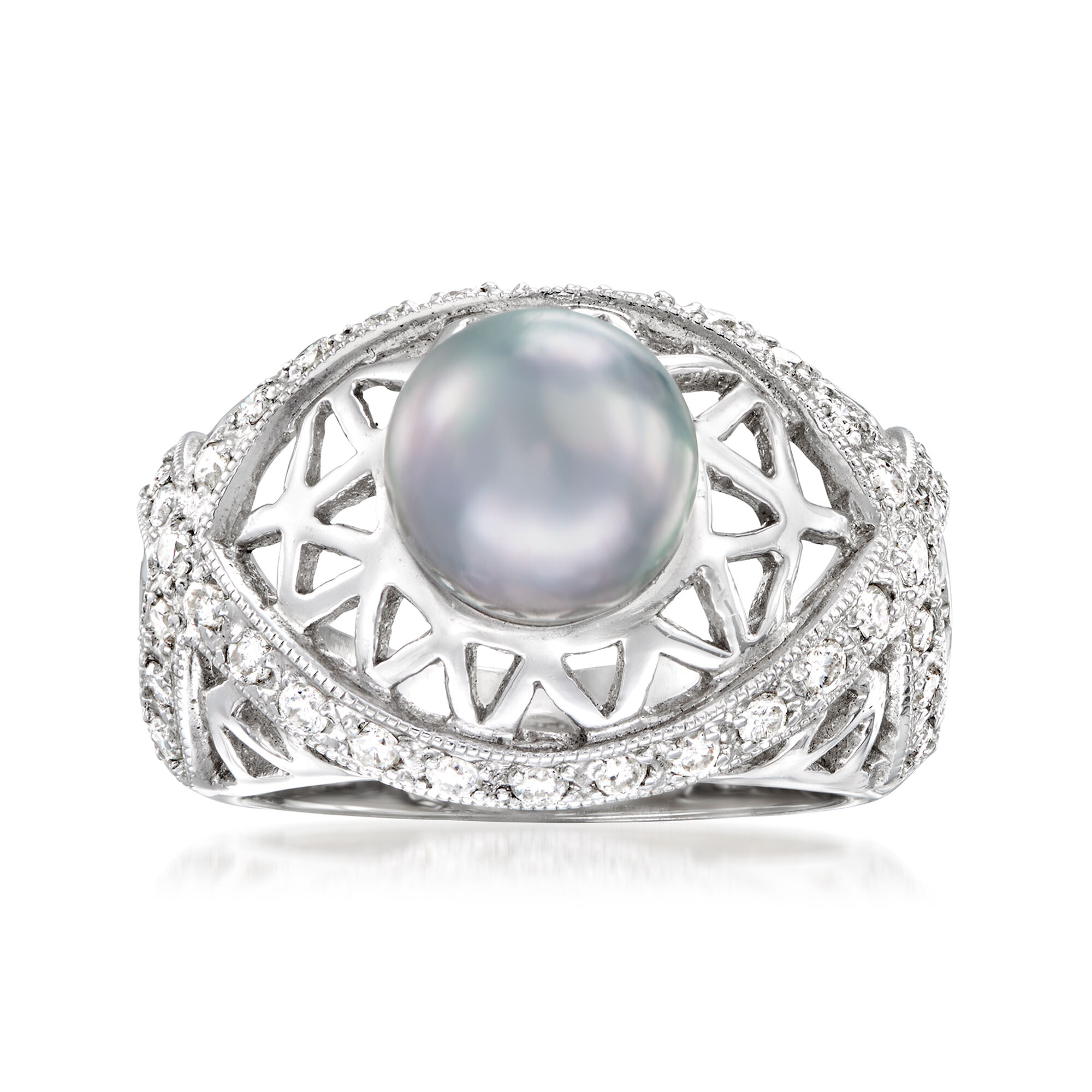 C. 1990 Vintage 8.8mm Cultured Gray Pearl and .75 ct. t.w. Diamond Ring in 18kt White Gold. Size 7.25