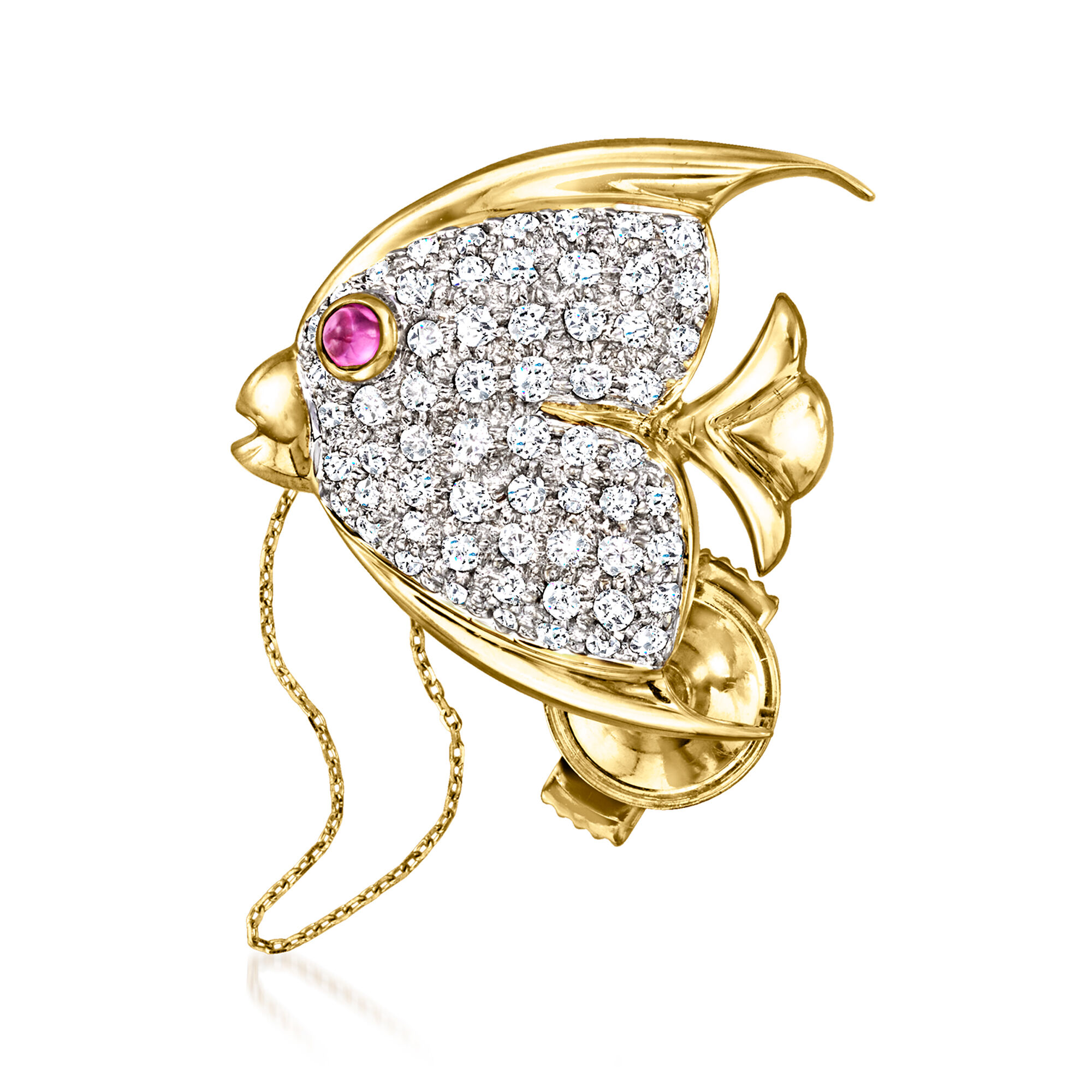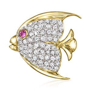 C. 1990 Vintage .82 ct. t.w. Diamond and .12 Carat Ruby Angelfish Pin in 18kt Yellow Gold