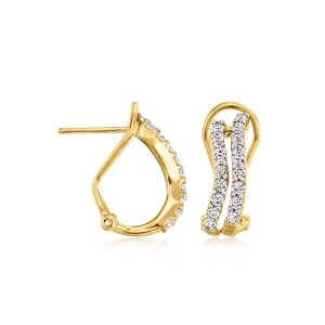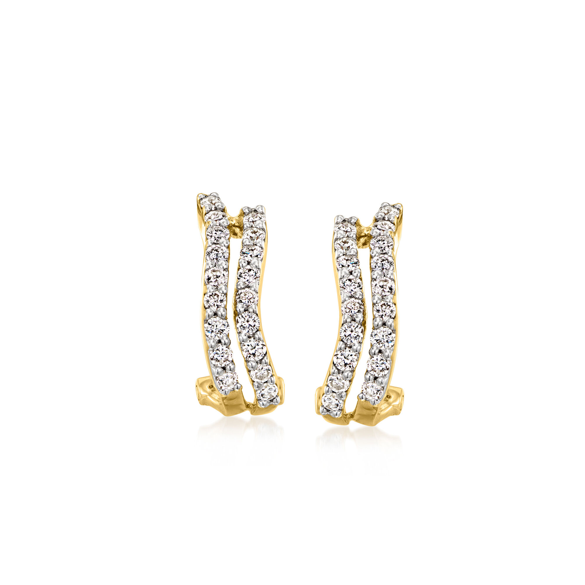 C. 1990 Vintage .90 ct. t.w. Diamond Wavy Earrings in 14kt Yellow Gold