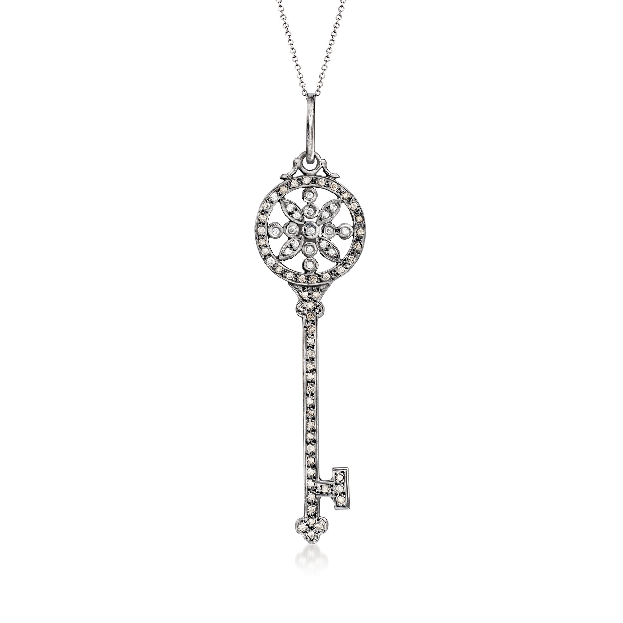 C. 1990 Vintage .93 ct. t.w. Brown and White Diamond Key Pendant Necklace in 14kt White Gold. 16″